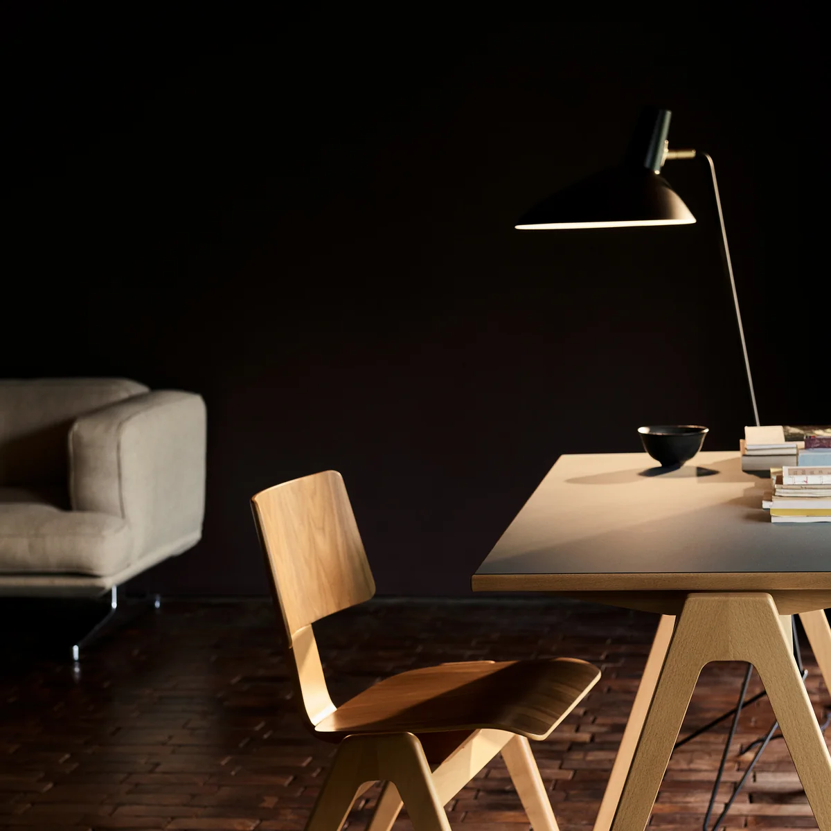 The Daystak RD2 table from & Tradition impresses with its simple yet refined aesthetics. The table top is made of high-quality wood, which is known for its natural beauty and durability. The frame gives the table a modern touch while ensuring stability and robustness. The combination of shape and material creates a harmonious overall look that fits into both modern and classic interiors.