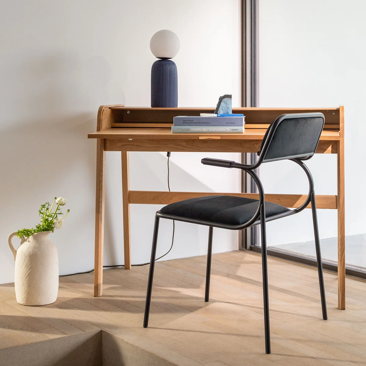 Thanks to its compact dimensions, the desk fits perfectly into smaller homes, creative studios or living rooms - without compromising on function or design.