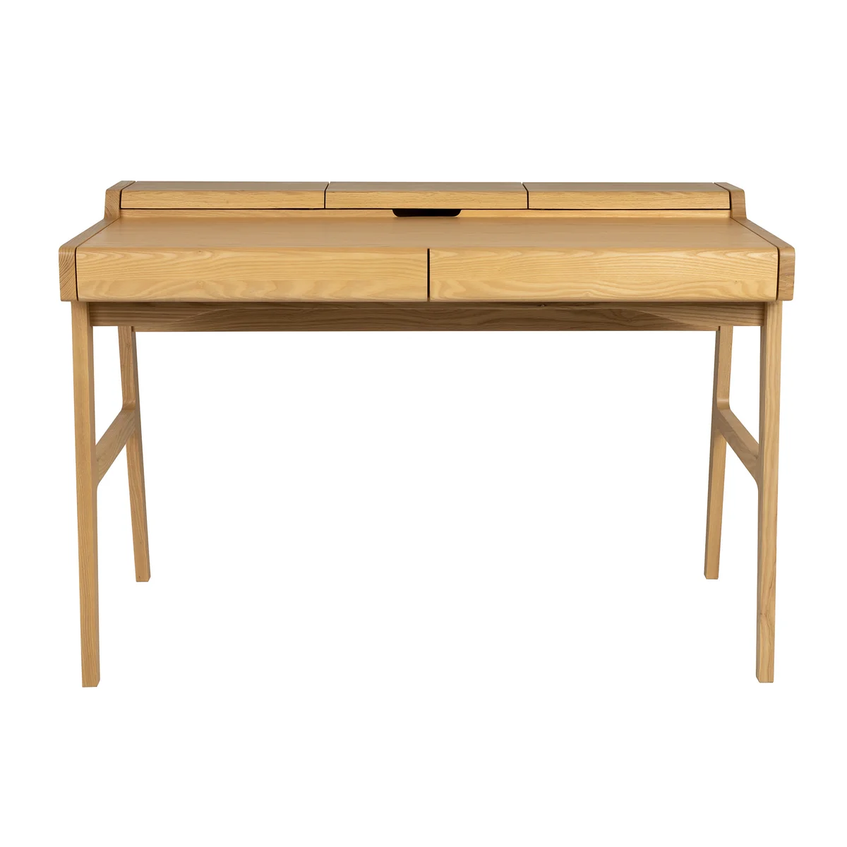 The Kaat desk from Zuiver is a stylish reinterpretation of the classic wooden desk - combined with the requirements of a modern workplace. The combination of natural oak veneer and ash wood gives the piece of furniture a warm, homely appearance and makes it the ideal addition to a home office, bedroom or living area.