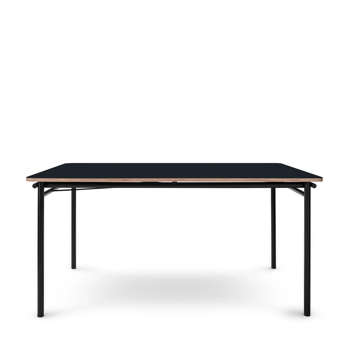 The dining table designed by Thomas Pedersen Taffel The dining table designed by Thomas Pedersen consists of a veneered tabletop with a linoleum coating and powder-coated steel legs. These materials are not only visually appealing, but also easy to clean and sustainable.