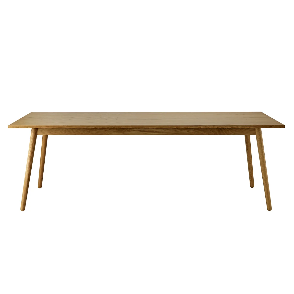 The slightly outward sloping legs of the dining table provide a special expressiveness and stability. At the same time, the table is characterized by its simple design, which blends in perfectly with various interiors. Measuring 95 x 220 cm, the table offers space for the whole family or friends for dinner evenings.