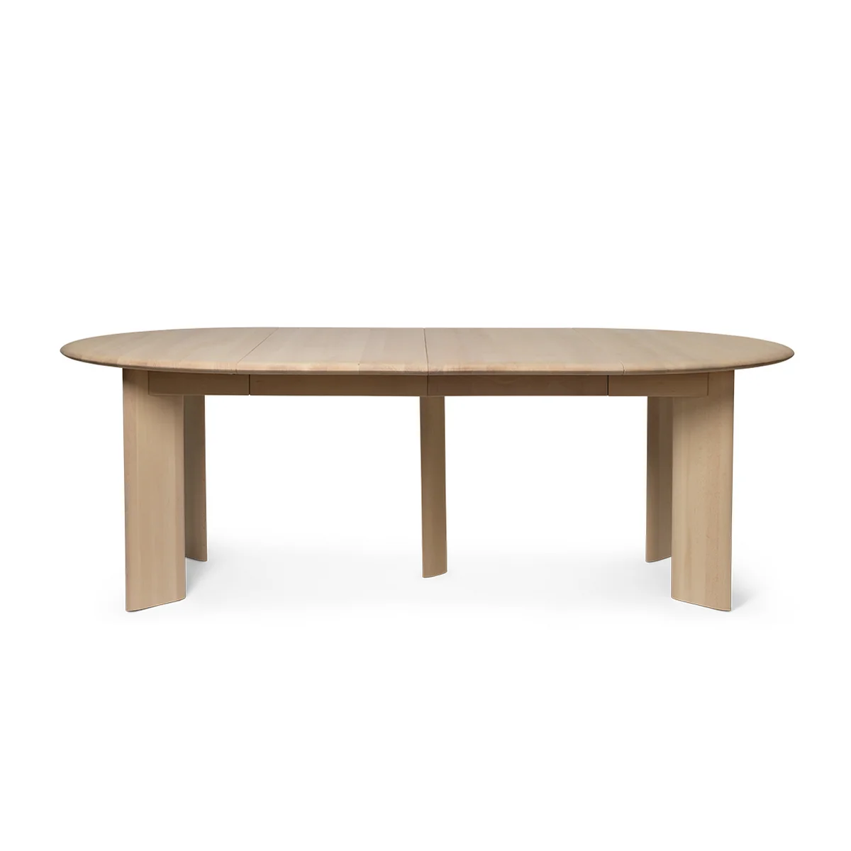 The Bevel Extendable table from Ferm Living convinces with its classic shape and the wide, sculptural legs. Rounded edges in turn give the table a soft touch and make it appear particularly high-quality. Placed in the living or dining room, the table looks both timeless and modern.