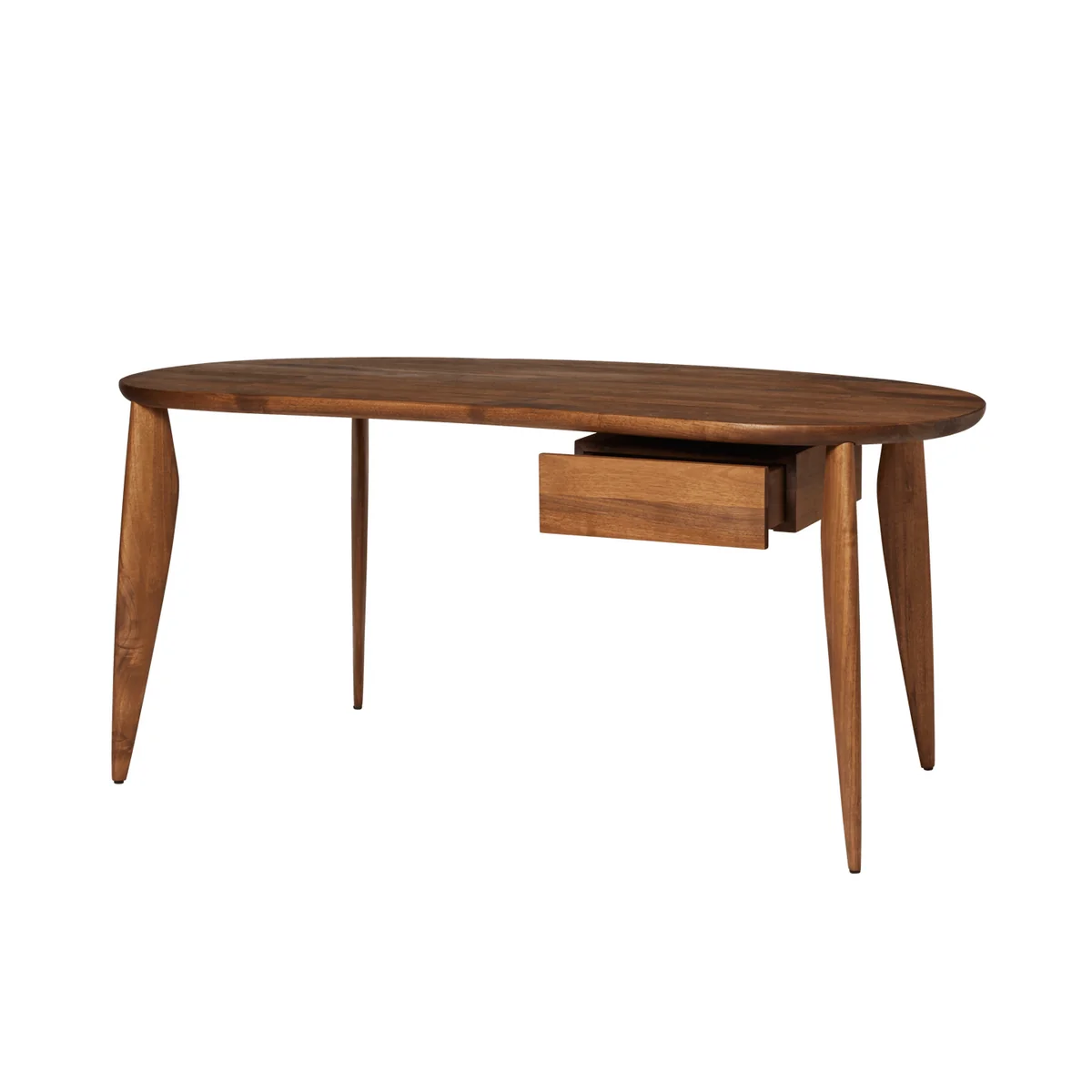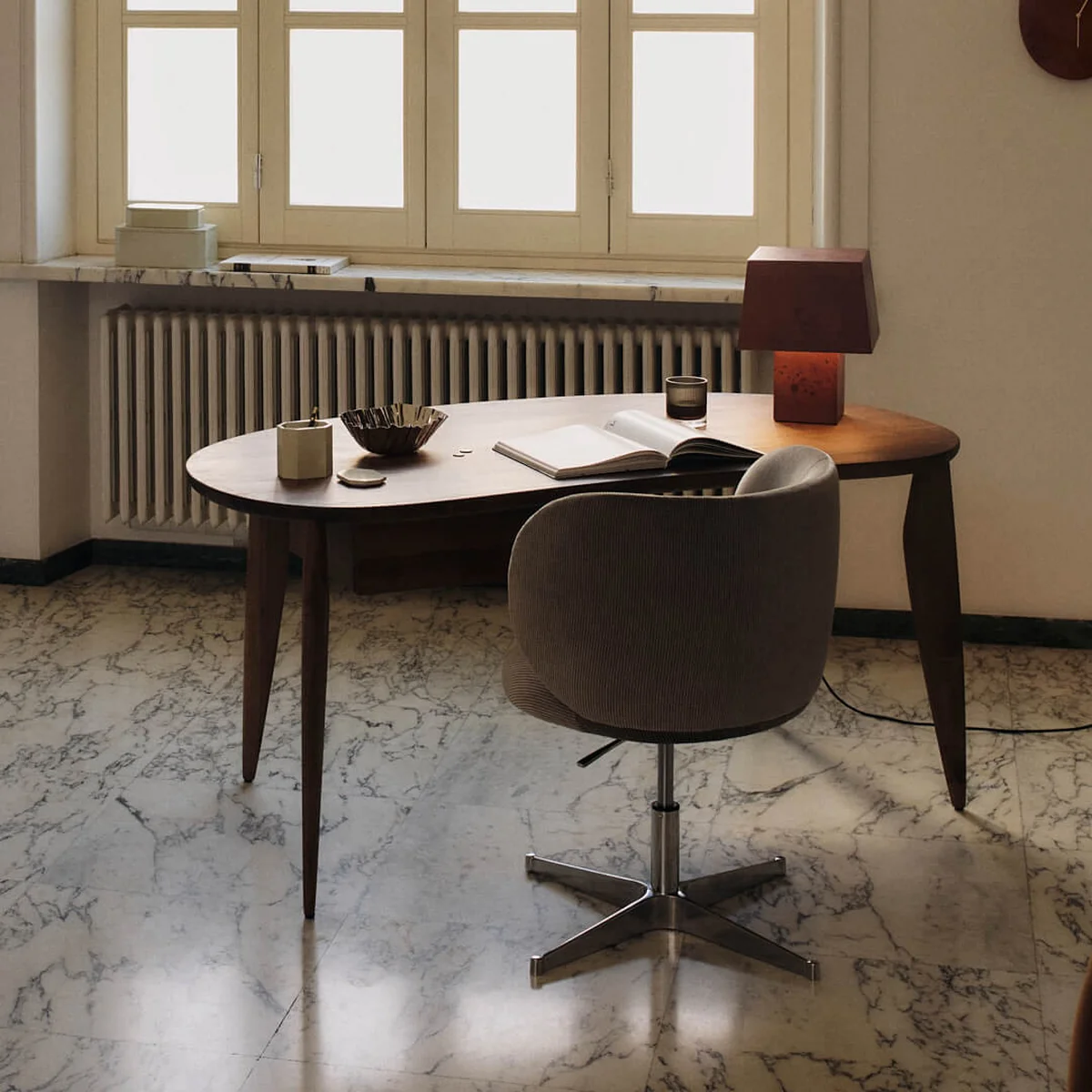 The Feve dining table from Ferm Living brings the characteristically soft lines of the collection Feve collection into a new, more generous format. Its gently curved shape radiates precision craftsmanship and natural elegance - a design that brings calm and lightness into the room. Whether as a desk, work surface or compact dining table: Feve adapts flexibly to different needs. An optional drawer provides discreet storage and underlines the functional appeal of this versatile piece of furniture.