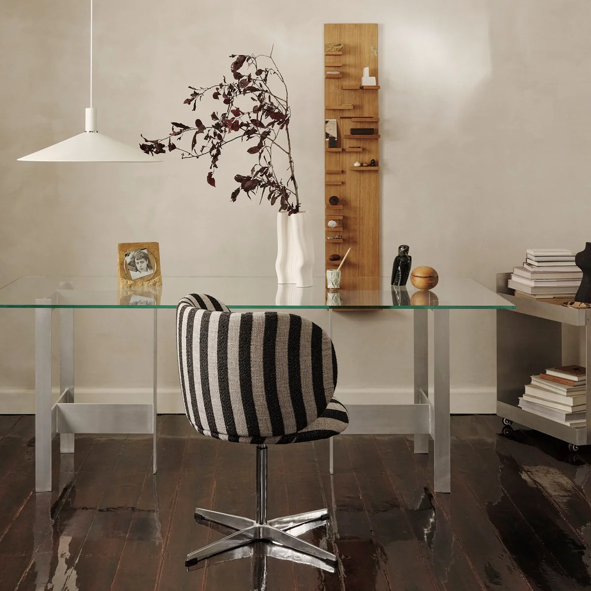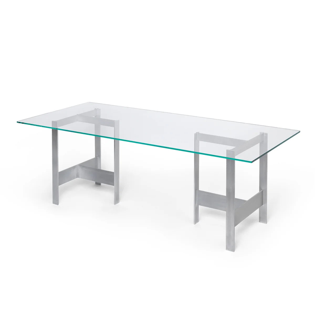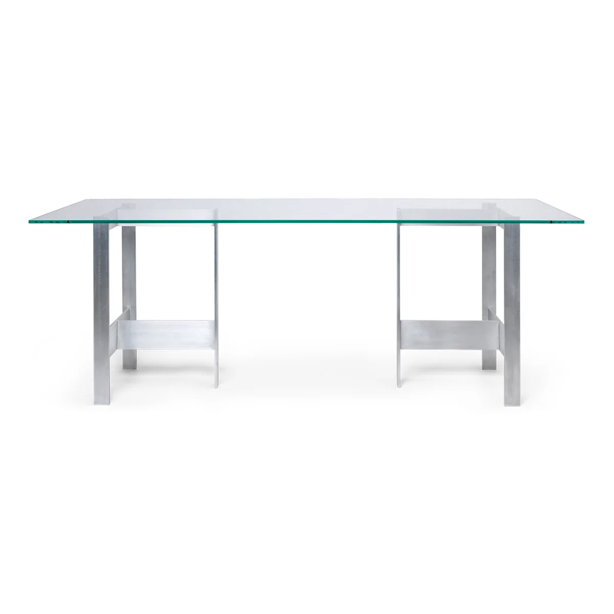 The Lager dining table from Ferm Living combines modern design with practical functionality and is a stylish highlight for any dining area. The sturdy aluminum frame provides a stable and durable base, while the generous 200 x 90 cm glass table top creates an elegant and open look. The clear, transparent surface of the glass makes the table look light and elegant at the same time, while the aluminum frame gives the piece of furniture a contemporary, industrial touch. Ideal for convivial meals and special occasions, the dining table offers Lager dining table offers both aesthetic appeal and high functionality.