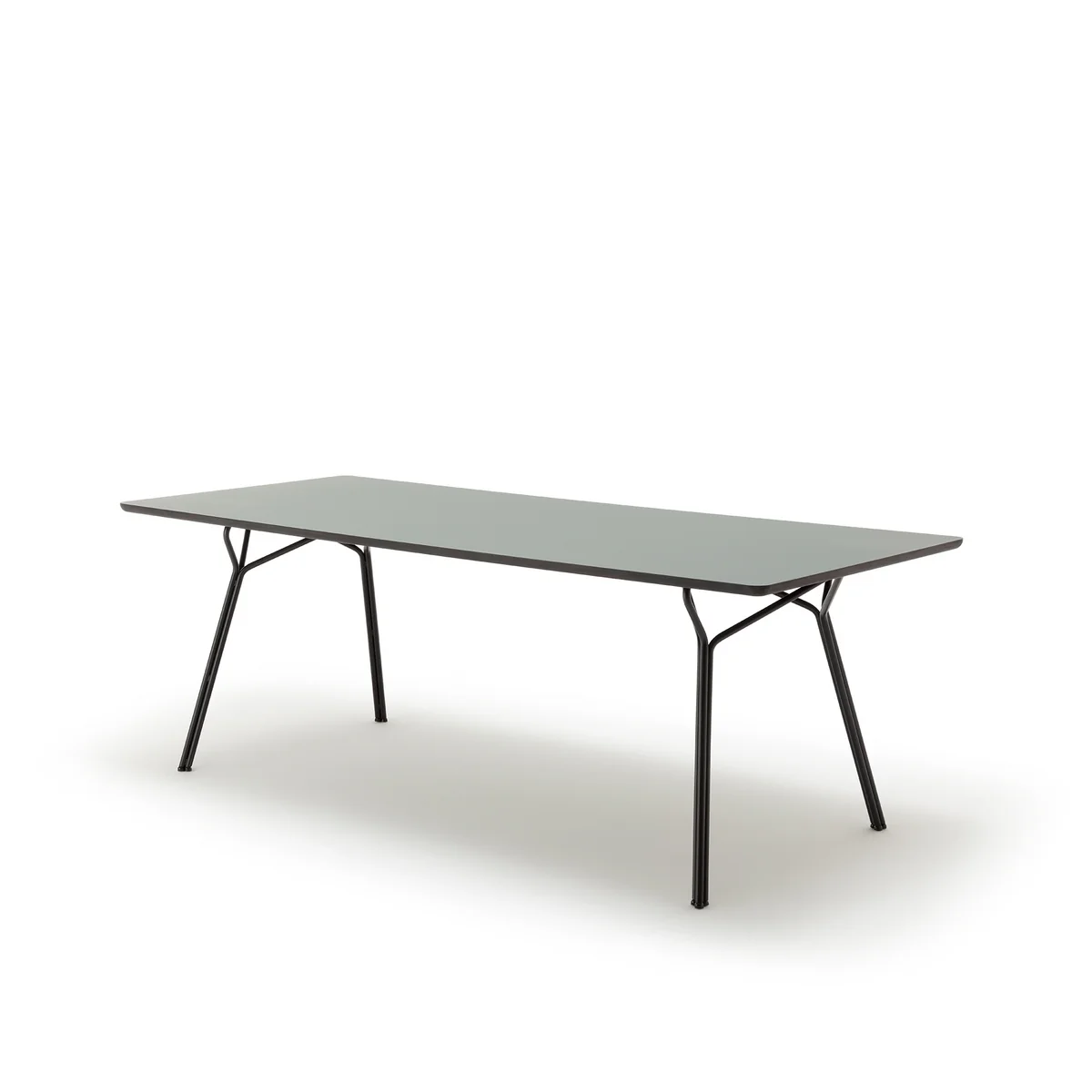 Matching the modern-minimalist 117 chairs from freistil is the dining table 120, which is made of tubular steel and a Fenix top. Fenix, actually Fenix NTM® is a building material developed in 2013 that allows easy-care matt surfaces to be installed in kitchens and dining rooms. The coating is barely a millimeter thick, but electron hardening and a non-porous surface means there is no visible staining, especially fingerprints. Of course, a tablecloth can also be laid on the table from the Black Forest design studio.