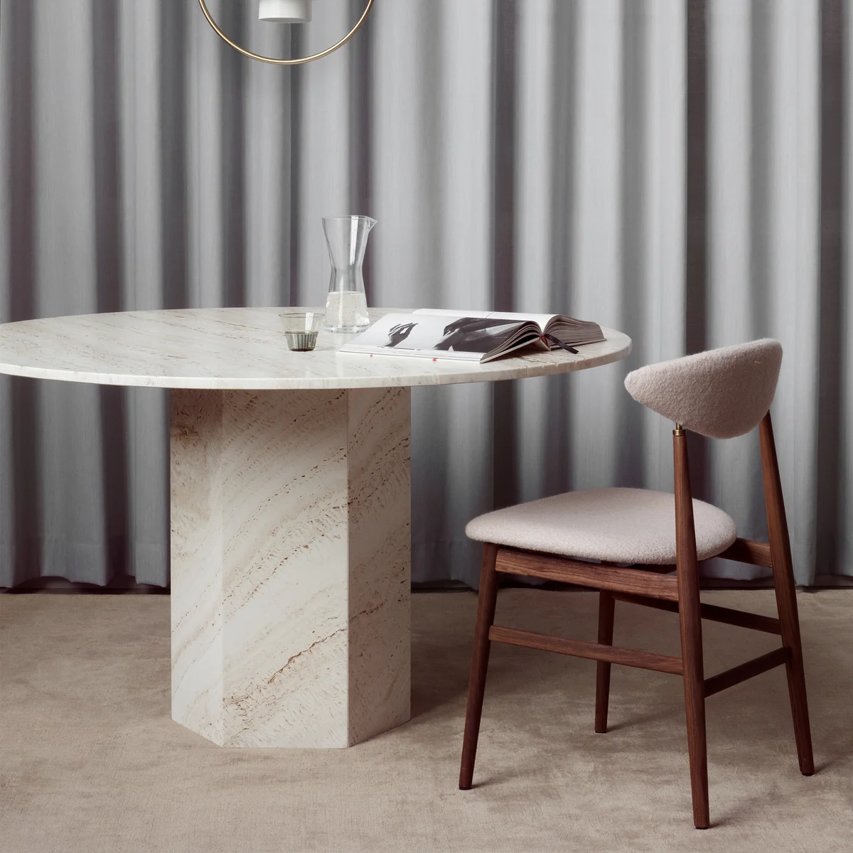 The Epic Dining table from Gubi is an extraordinary table in many ways: Made of beautiful travertine stone in Italy, the design of the Italian-Danish designer duo GamFratesi is inspired by the columns of ancient Rome. The name, Epic is based on the tales and legends of antiquity. Write your own design history!