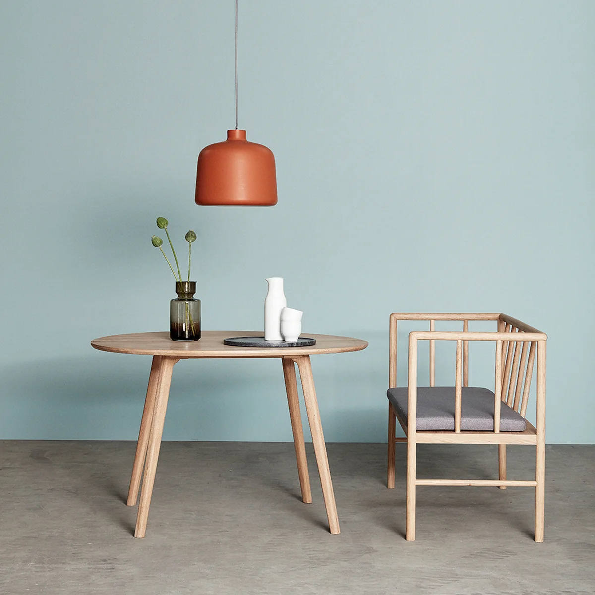 The Hübsch Interior Ground Dining Table is an impressive piece of furniture that is made of high quality solid material. This dining table is characterized by its unique and modern design. It combines clean lines and a minimalist aesthetic with the natural beauty of wood. The Ground Dining table serves not only as a place for meals, but can also function as a work surface, meeting table or focal point in the home or office.