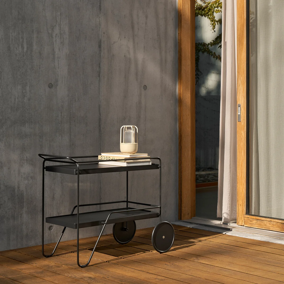 The CLICK serving trolley combines clean lines with sophisticated functionality. Whether for serving drinks and snacks or as a flexible side table - the serving trolley adapts effortlessly to different usage scenarios. The minimalist frame and robust materials are designed for everyday use, while the integrated castors make it easy and comfortable to move on different surfaces. A versatile piece of furniture that adds character, order and comfort to the outdoor area.