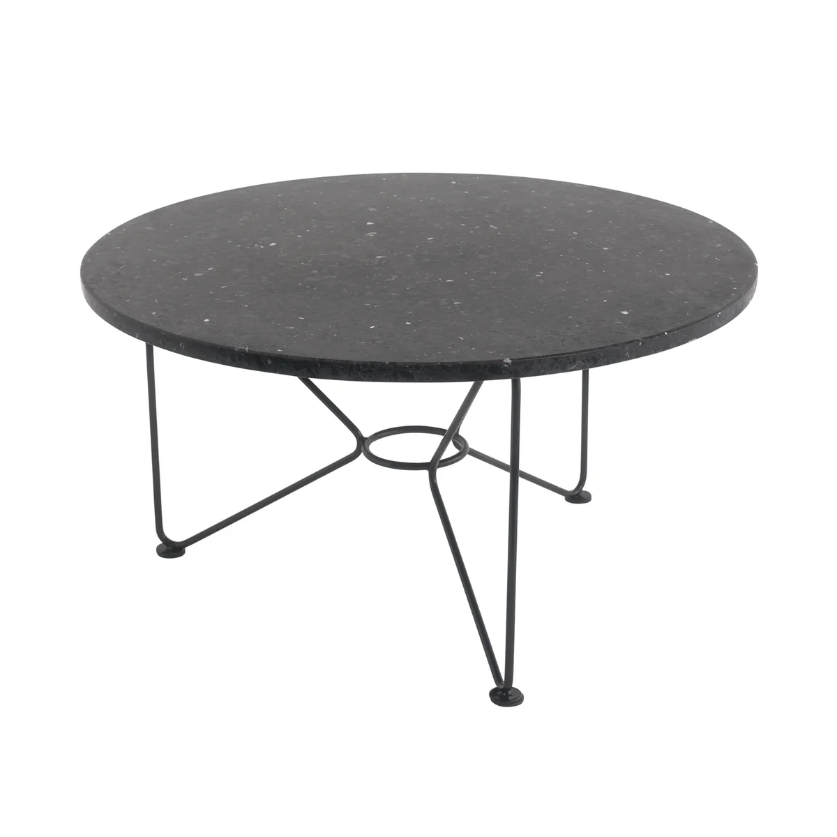 The Low Table is based on the design of the Ring Table . A terrazzo top is supported by a delicate metal frame, with a central ring acting as the key element, cleverly linking the table legs and top to create a graceful butterfly-shaped pattern.