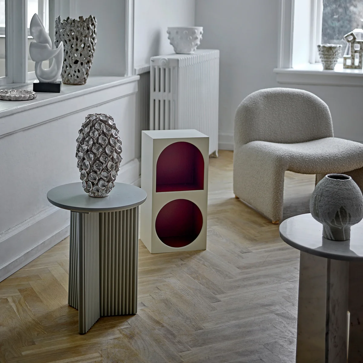 The Edith side table from Bloomingville combines modern design with natural charm. Made from pine wood and MDF, the round table is characterized by its clear shape and the vertical grooves on the base, which give it structure and visual depth. Whether as a coffee table in the living room, as a stylish bedside table in the bedroom or as a decorative element in a reading corner - Edith blends harmoniously into various living areas and sets subtle, elegant accents.