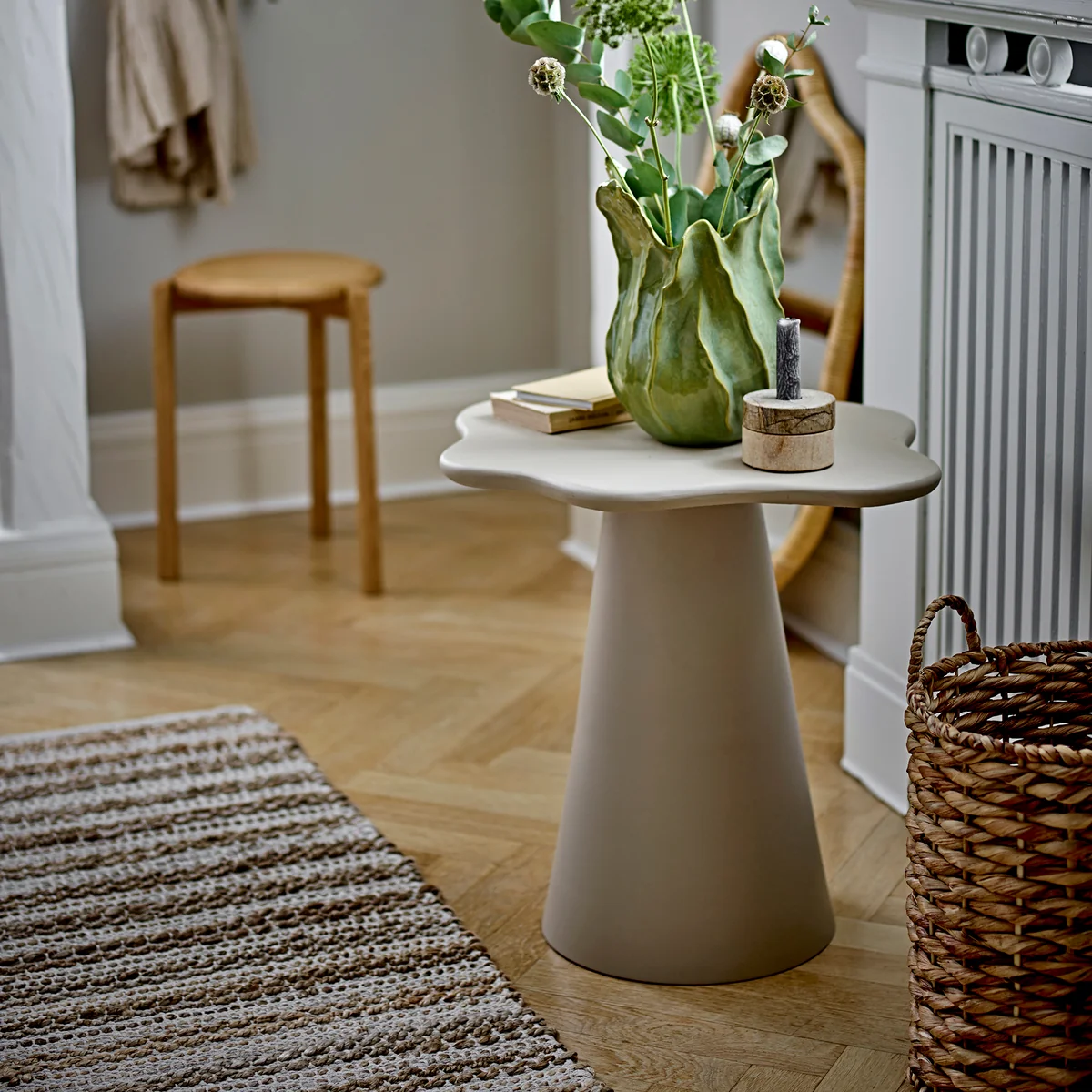 The Soller side table from Bloomingville , made from high-quality aluminum, is coated with an elegant beige lacquer that creates a subtle contrast to the robust nature of the metal. With its organically curved shape, the table brings a natural and charming element to any living space and helps to create a cozy and inviting atmosphere. Whether as a storage surface next to the sofa or as a decorative highlight in the hallway, the Soller side table impresses with its versatility and stylish aesthetics.