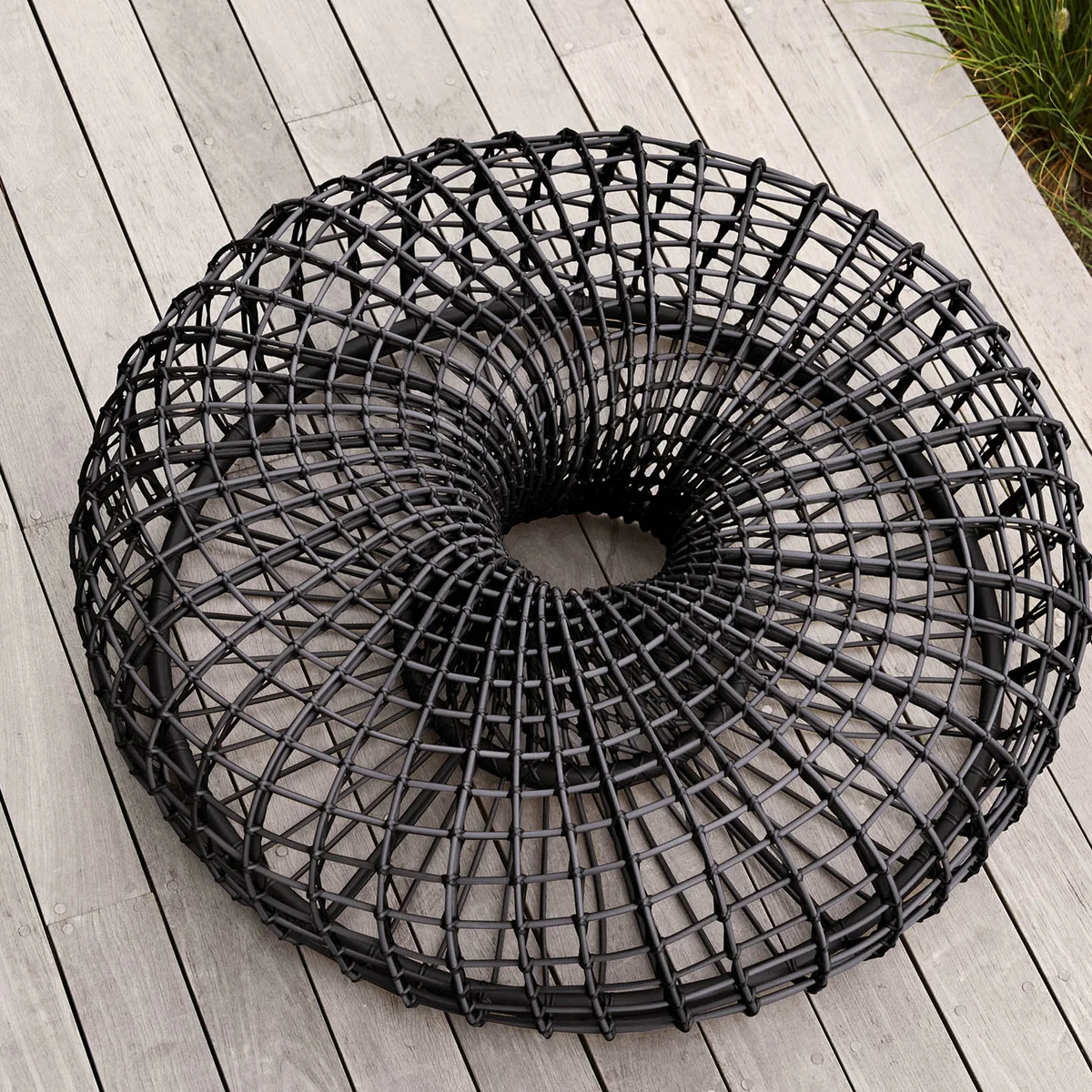 Nest Combines many practical functions: it can be used as a footstool, coffee table or decorative element outdoors. Made of the weather-resistant and hard-wearing material Cane-line Weave® and a solid aluminium frame, it is a timeless and particularly durable piece of furniture. Nest a timeless and particularly durable piece of furniture.