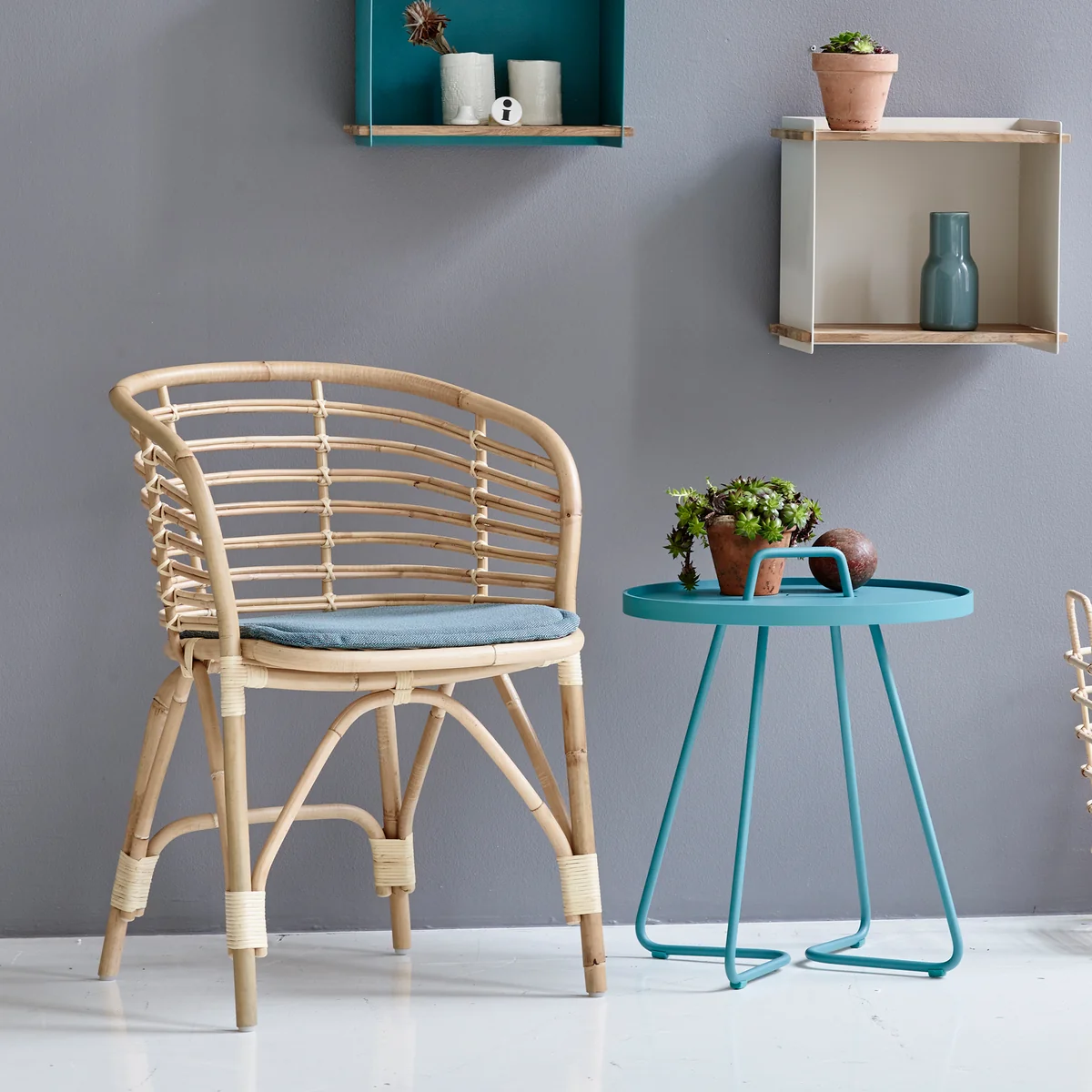 The On-the-move side table Outdoor from Cane-line was designed by Strand + Hvass and is a functional and stylish side table for indoor and outdoor use. The designer duo received the coveted "Interior Innovation Award" design prize for the design in 2012.