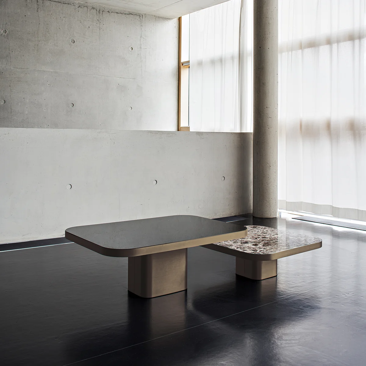 The Bow coffee table from ClassiCon is inspired by the lines and designs of the 1970s. The elegant Bow table was designed by Brazilian Guliherme Torres in 2022. The metal-covered surface of the structure is typical of the 1970s, but has a distinctly contemporary touch. The glass-clad table top literally floats above a base with rounded edges. Bow can be used either as a coffee table or side table and offers an extraordinary amount of space with its large table surface.