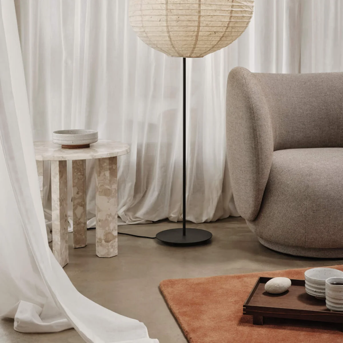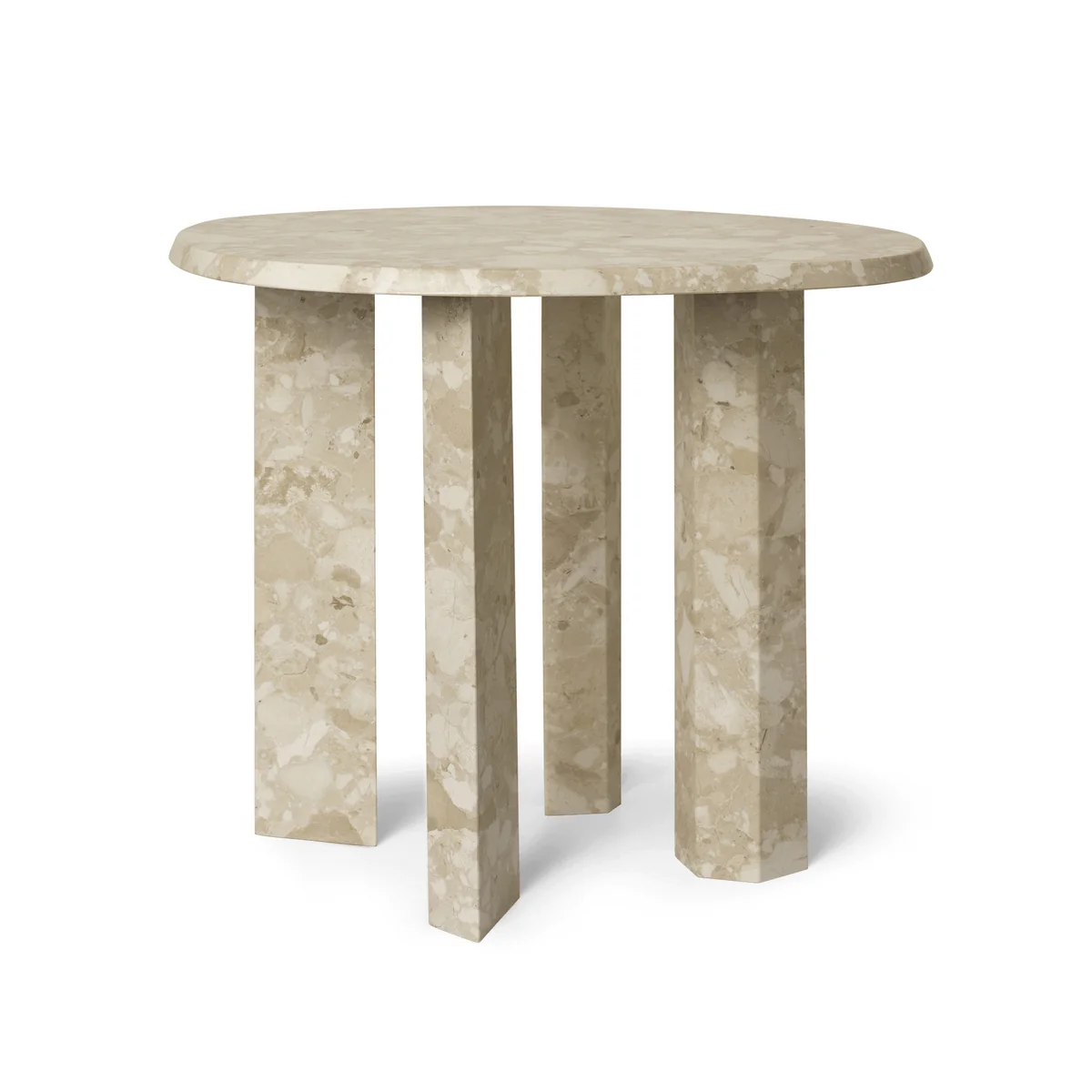 The Taula side table from Ferm Living is an elegant and functional addition to any room. Made from fine marble, it combines luxurious aesthetics with solid stability. The soft, warm tones of the marble add a sophisticated touch to your interior and harmonize with both modern and classic styles. The minimalist design emphasizes the natural grain of the marble and gives the table a timeless elegance. The Taula side table is ideal as a stylish shelf next to the sofa or bed and adds an elegant accent to your home.
