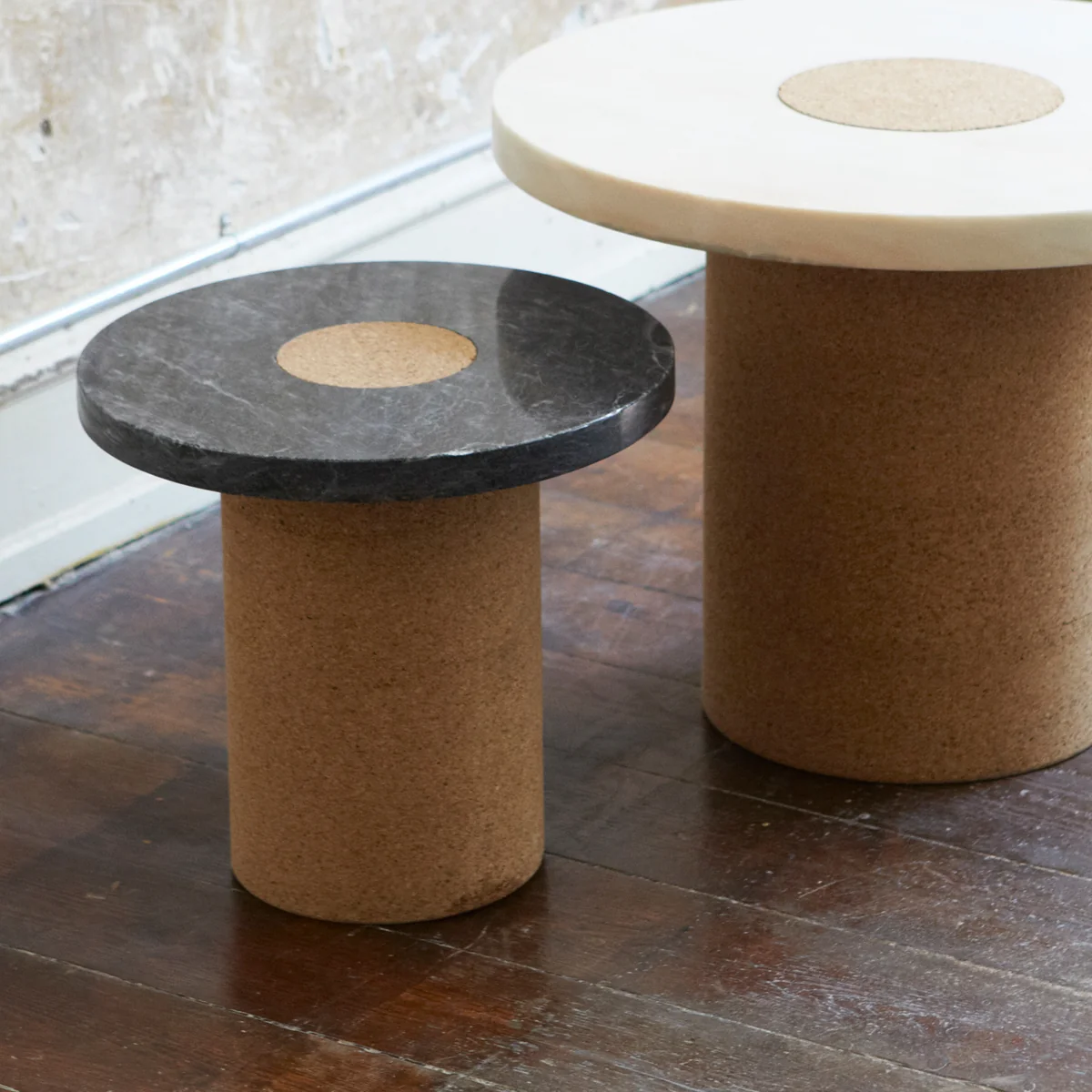 A special highlight is the interplay of materials: the side table is made of cork. Sintra side table is made of cork and marble. Since these are natural materials, each piece is unique. Available in two colours and sizes.