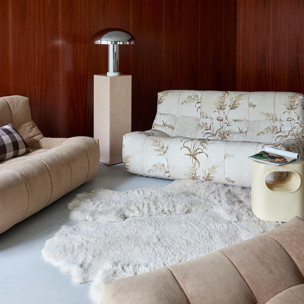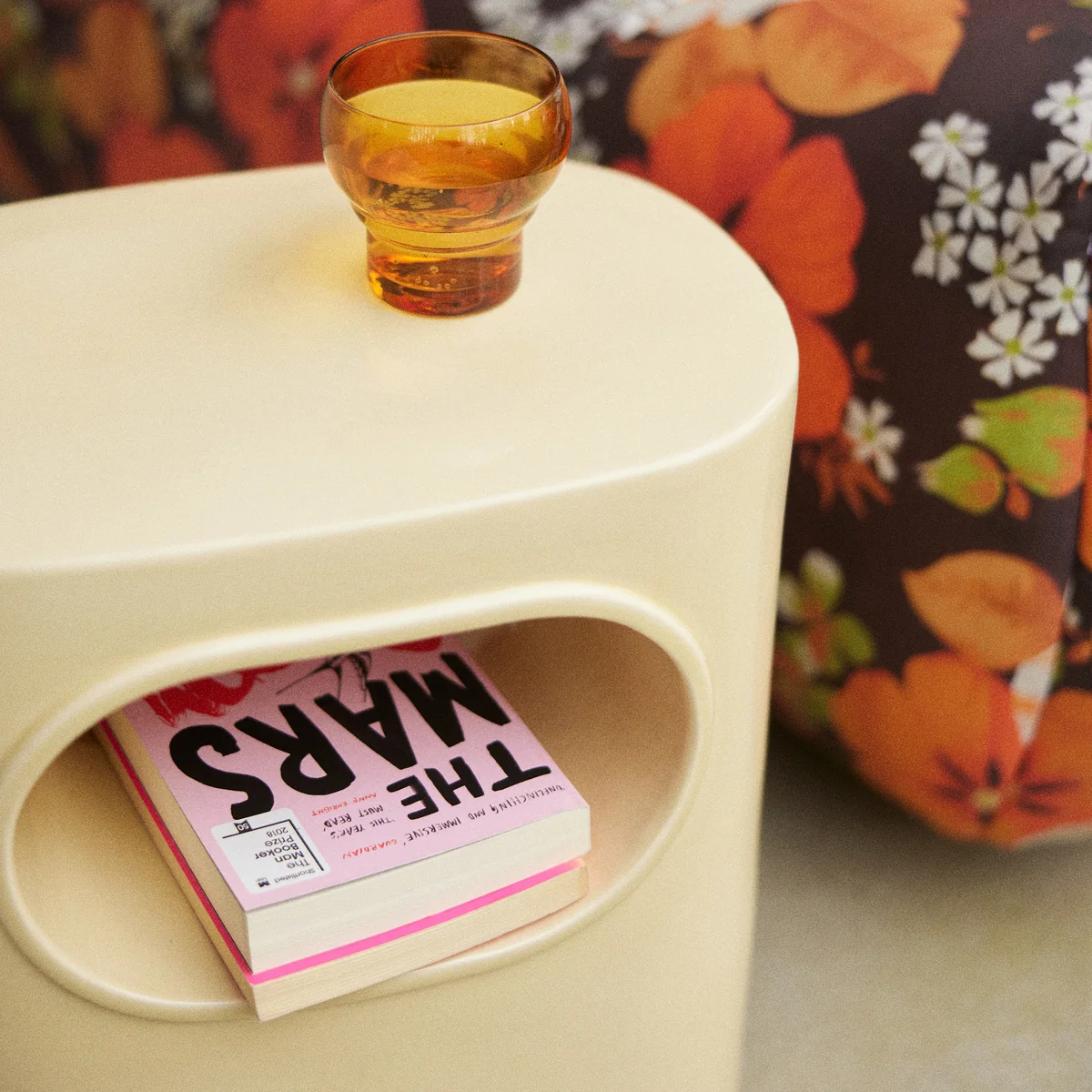 This versatile Space side table from HKliving in timeless cream and vibrant orange embodies the marriage of form and function and epitomizes a modern, space-inspired aesthetic. Its smooth, glossy surface not only attracts attention, but is also practical as it is effortless to clean and durable. The central recess serves as a practical storage space that promotes organization while providing a shelf for beloved reading material.