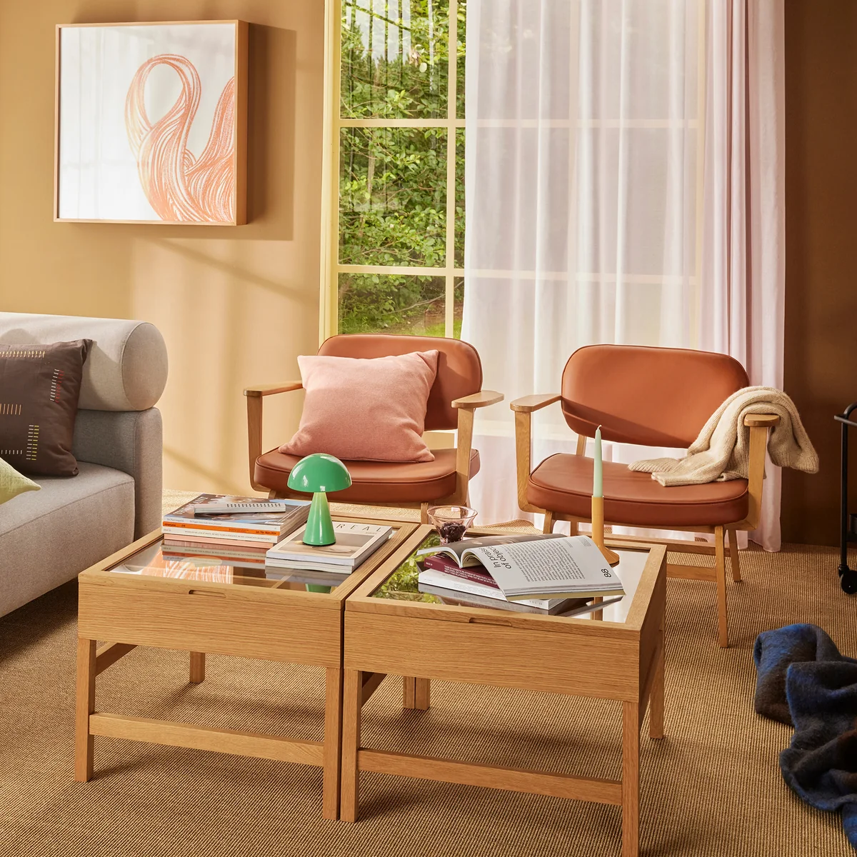 The Glitz side table offers a practical glass shelf for drinks, lamps, books or decorative objects. The combination of wood and glass creates a stylish, understated aesthetic that can be used in the living room, bedroom, hallway or study. With its minimalist look and clean, elegant lines, the Glitz side table gives the room a modern yet cozy atmosphere.