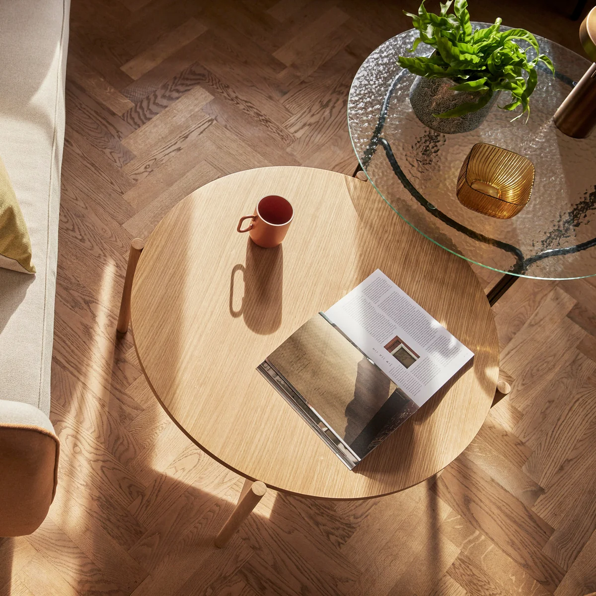 The Heritage side table from Hübsch Interior exudes classic elegance. The soft, rounded legs and table top harmonize with the clean, straight lines of the cross base. The delicate grain of the oak wood not only stands out, but also adds a natural and homely touch to the living space. The oak wood is additionally very robust and durable. Combined with soft and light colors, the furniture pieces achieve a timeless and warm effect.