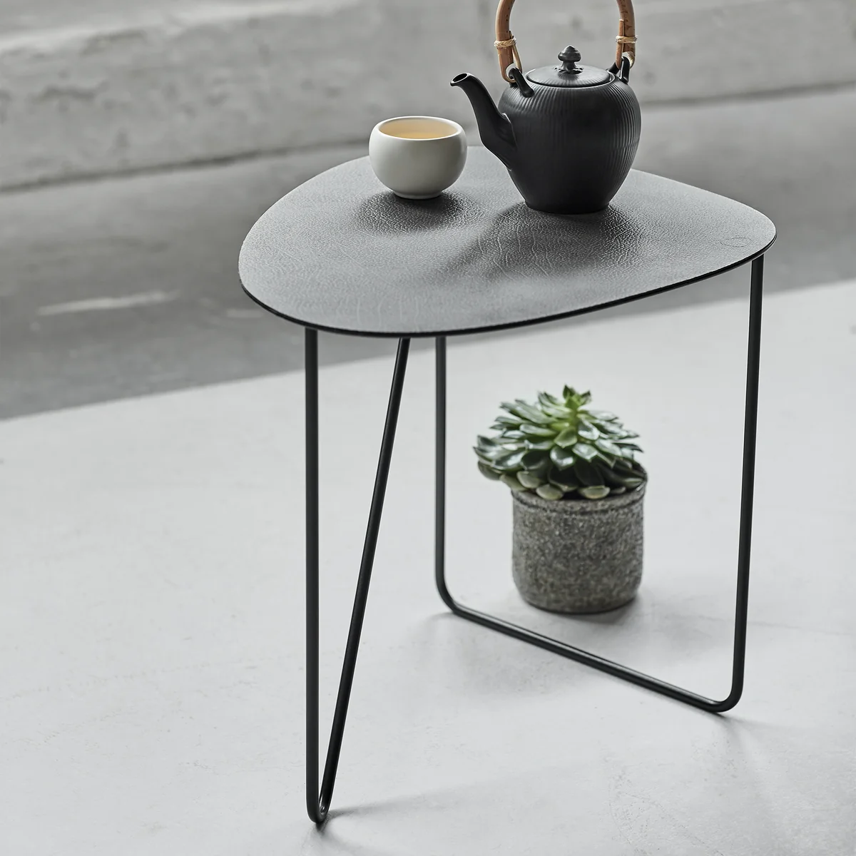 The Curve Side table consists of a filigree frame of powder-coated steel. The angled legs give the otherwise minimalist design an unmistakable character. The table top in the Curve Form is covered with recycled leather.