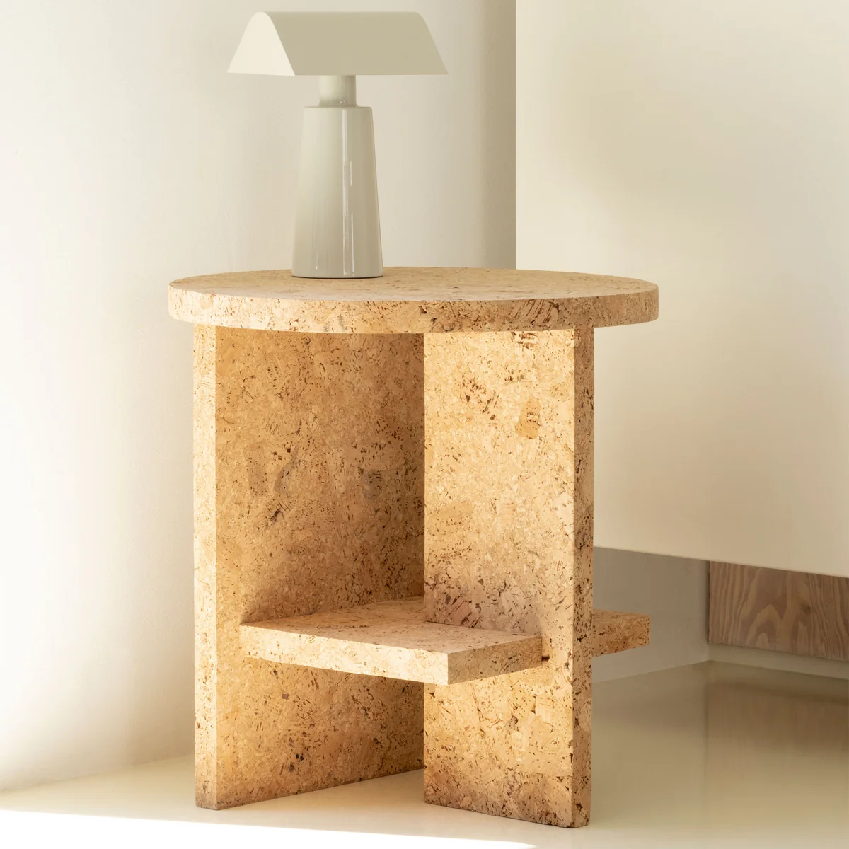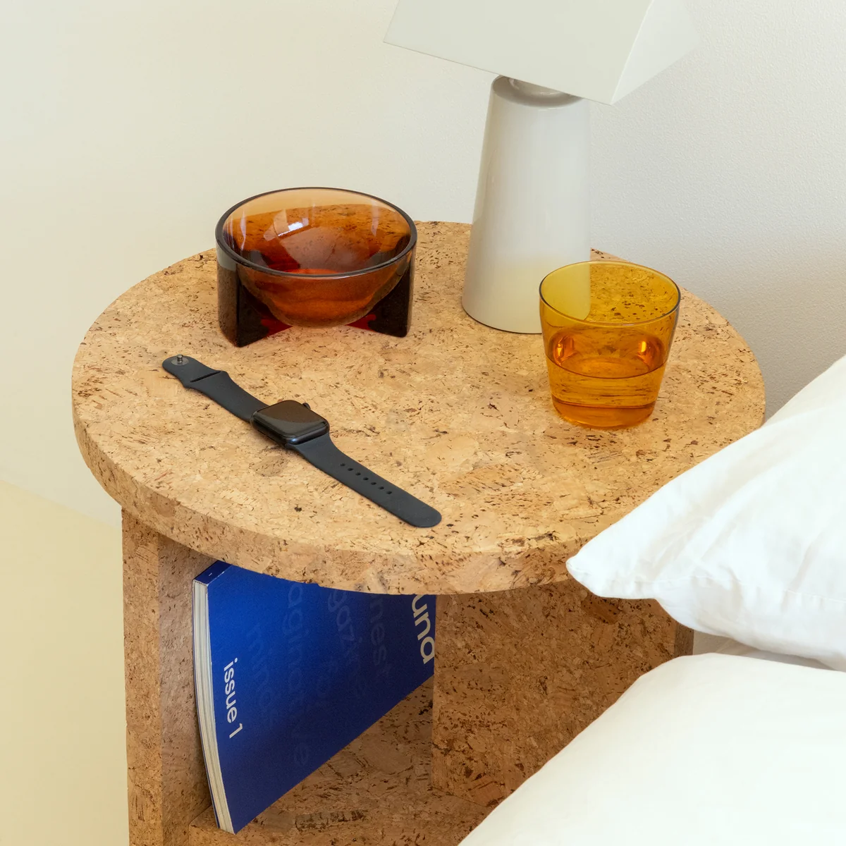 Made from high-quality, natural materials such as solid oak or cork, the table impresses with its geometric design. Whether next to the sofa with a reading lamp or as a stylish shelf - the NINE side table is versatile and a decorative highlight.