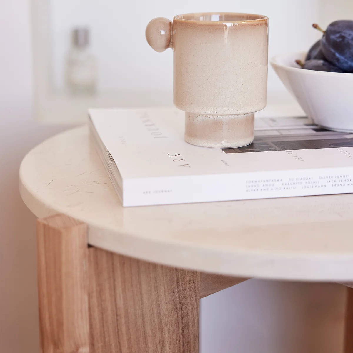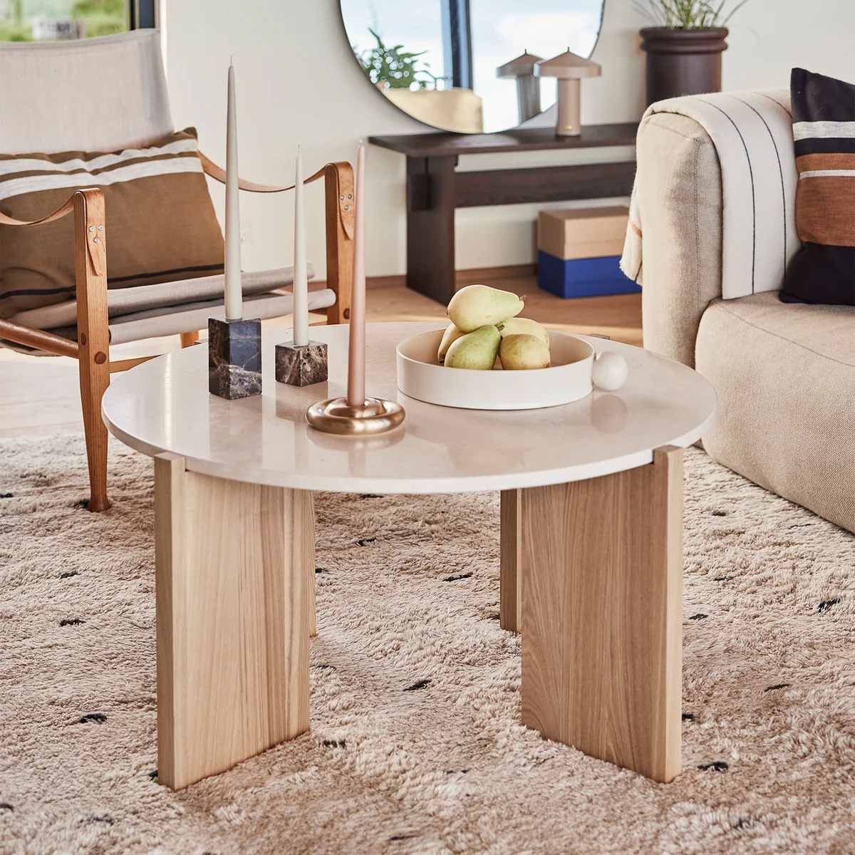 The characteristic feature of the Lune side table is the round table top, which creates a warm and inviting atmosphere thanks to its soft lines and high-quality material. The table top is made of high-quality wood and has been carefully crafted to ensure a smooth surface. The clean lines and minimalist shape make it a versatile piece of furniture that can be easily integrated into different interior styles.