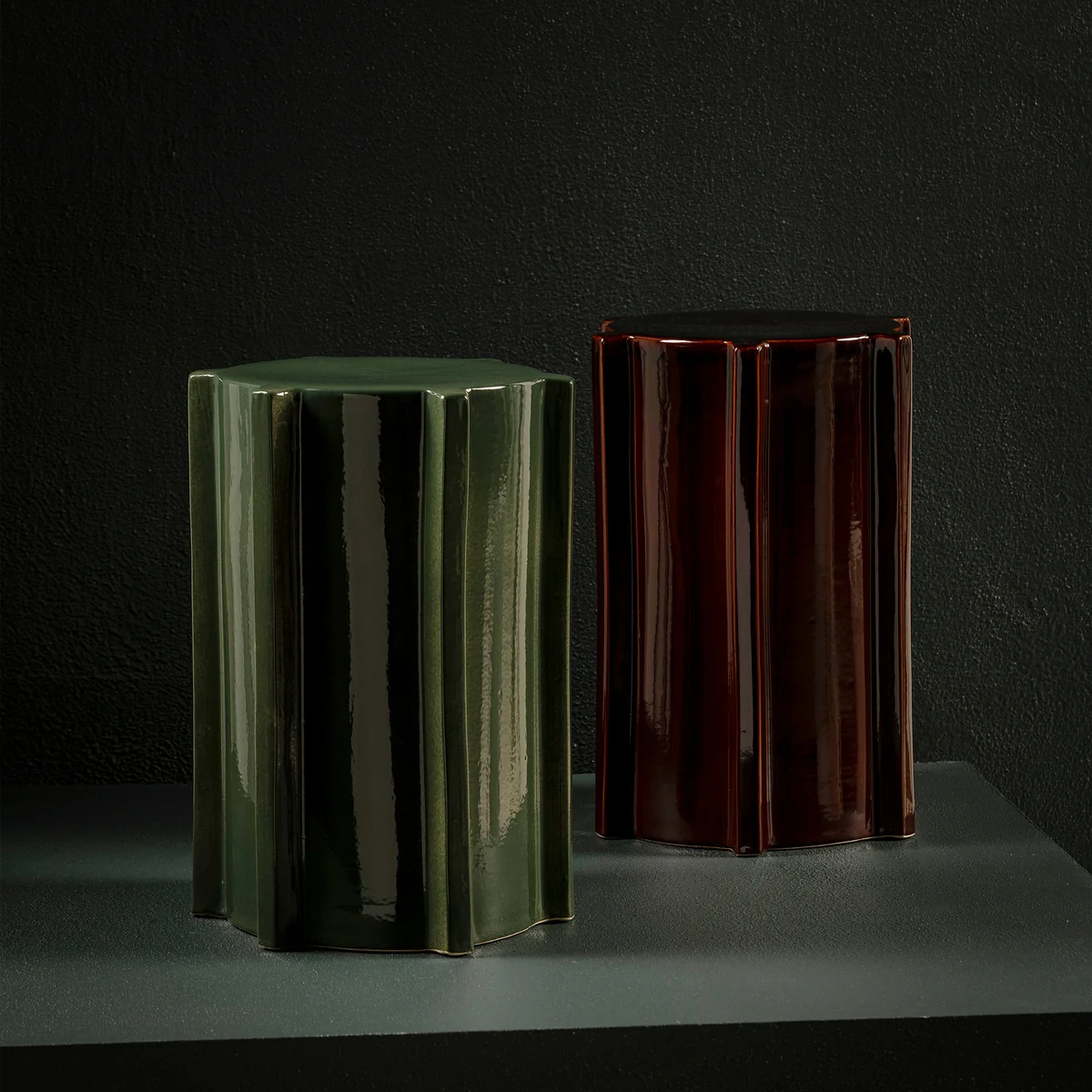 The Pawn side table from Serax , designed by Marie Michielssen, combines unusual shapes with harmonious design. Made of stoneware and finished with a glossy glaze on the top, the table combines aesthetic sophistication with functionality. The glossy surface not only provides a beautiful visual contrast to the rough texture of the stoneware, but also serves as a practical storage surface.