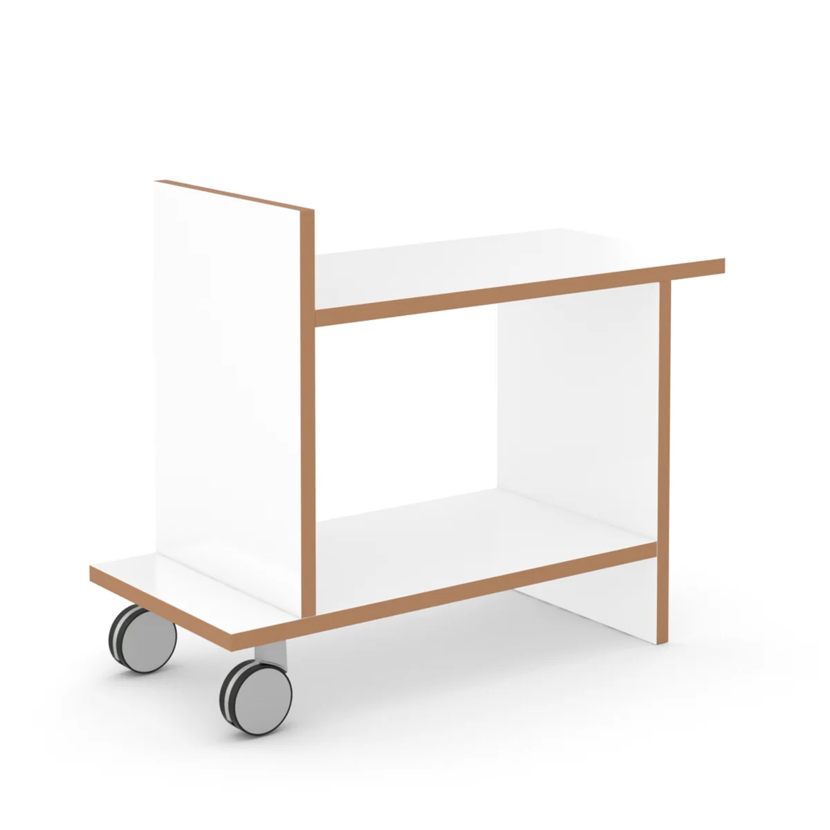 Besides the sofa or the bed, but also under the desk, the side table cuts a good figure. The table is made of coated MDF in white and offers space on two levels for books, files, vases, bowls and much more.