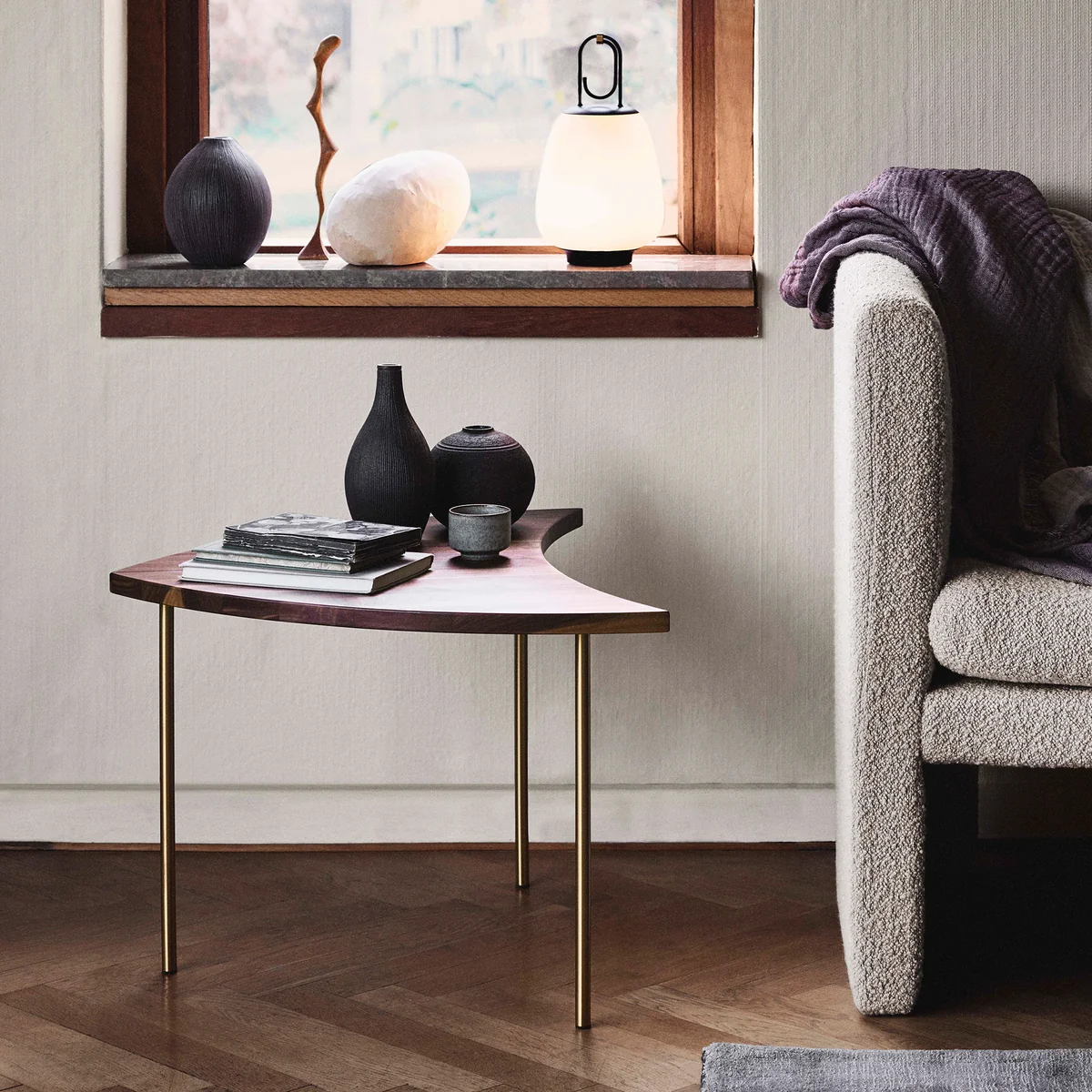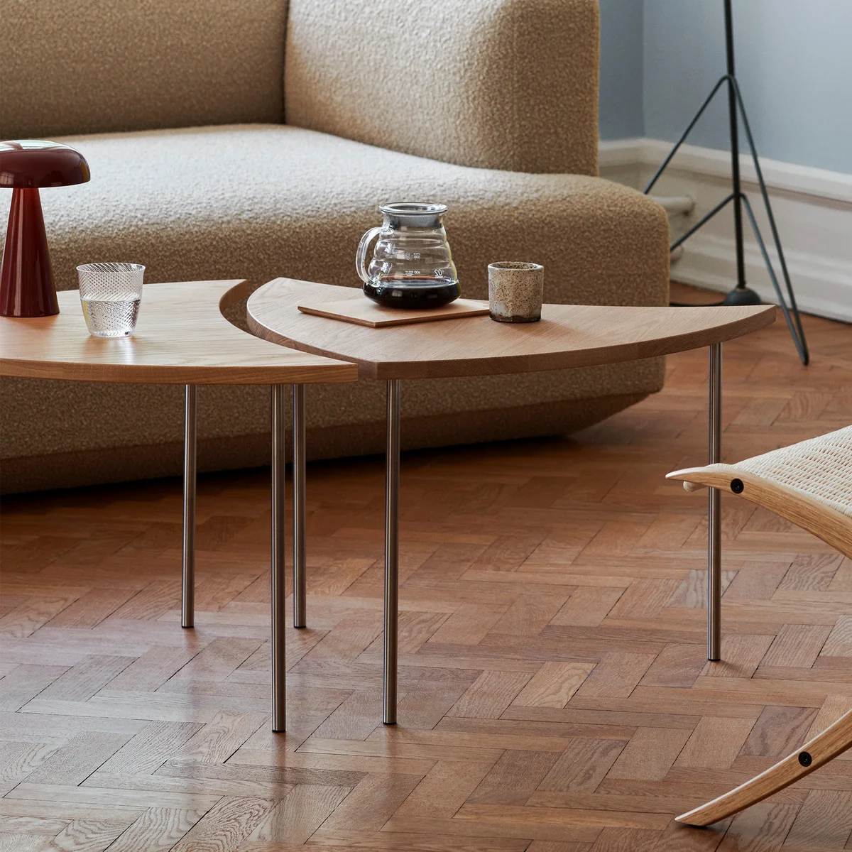 The slender and beautifully shaped Pinwheel HM7 side table from & Tradition by Hvidt & Mølgaard from 1953 is a versatile piece of furniture. Designed to be adaptable, the practical table has a curved shape that allows several Pinwheel tables to be put together. This creates tables of any size in different shapes in front of the sofa or next to the armchair in the living area.