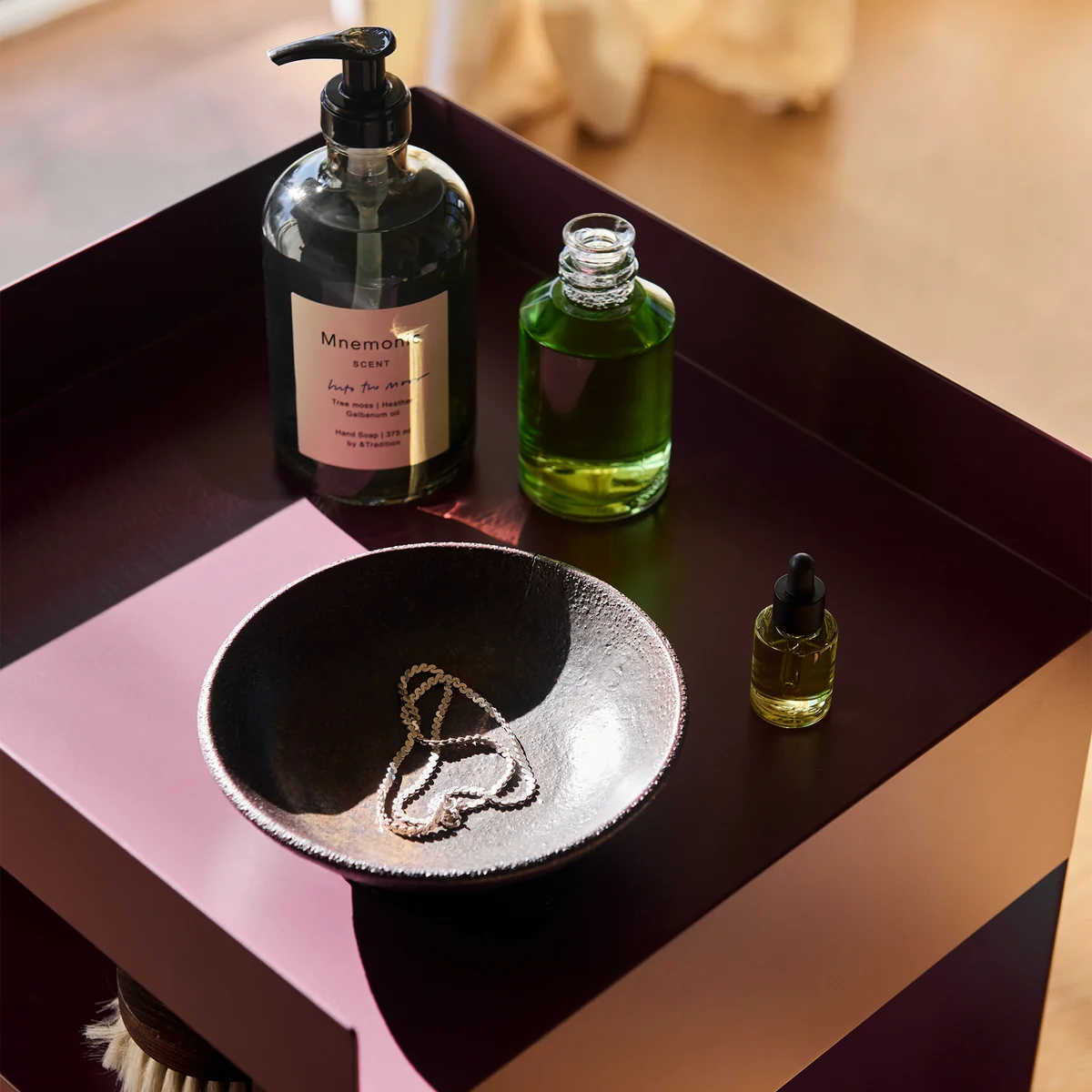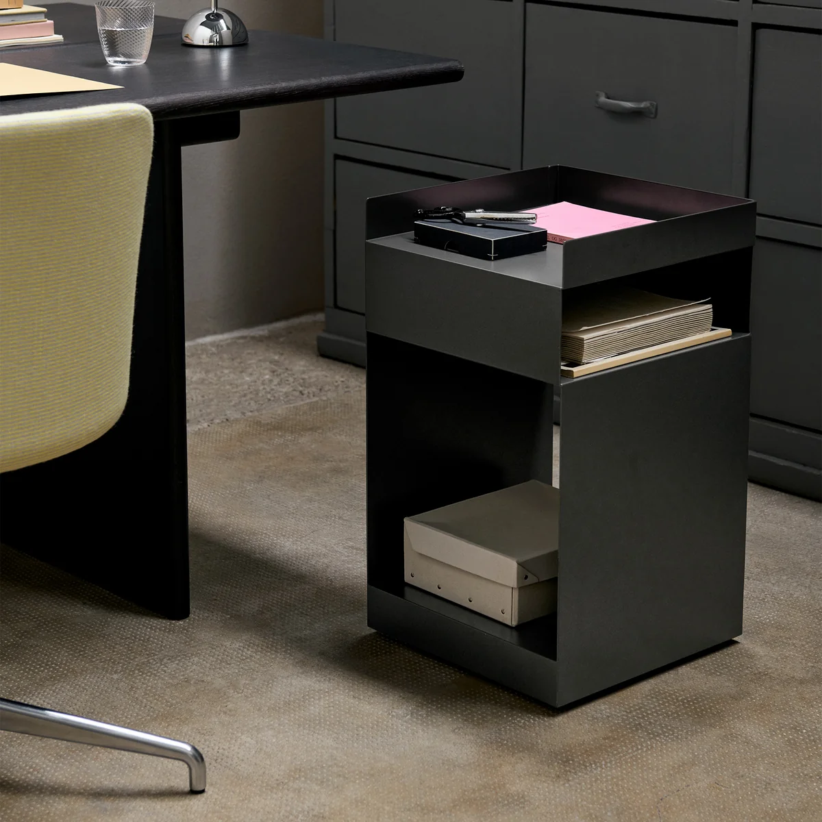 The Rotate SC73 side table from the Danish manufacturer & Tradition appears to be quite simple at first glance, but this belies its functional design. The asymmetrical side table can be used for a variety of purposes - from an office trolley to a shelf in the bathroom or a classic bedside table in the bedroom; Rotate can be integrated into any living space. It is made from a single piece of sheet metal, which is cut into two parts, bent and then welded together. The side table's wheels make it easy to maneuver.