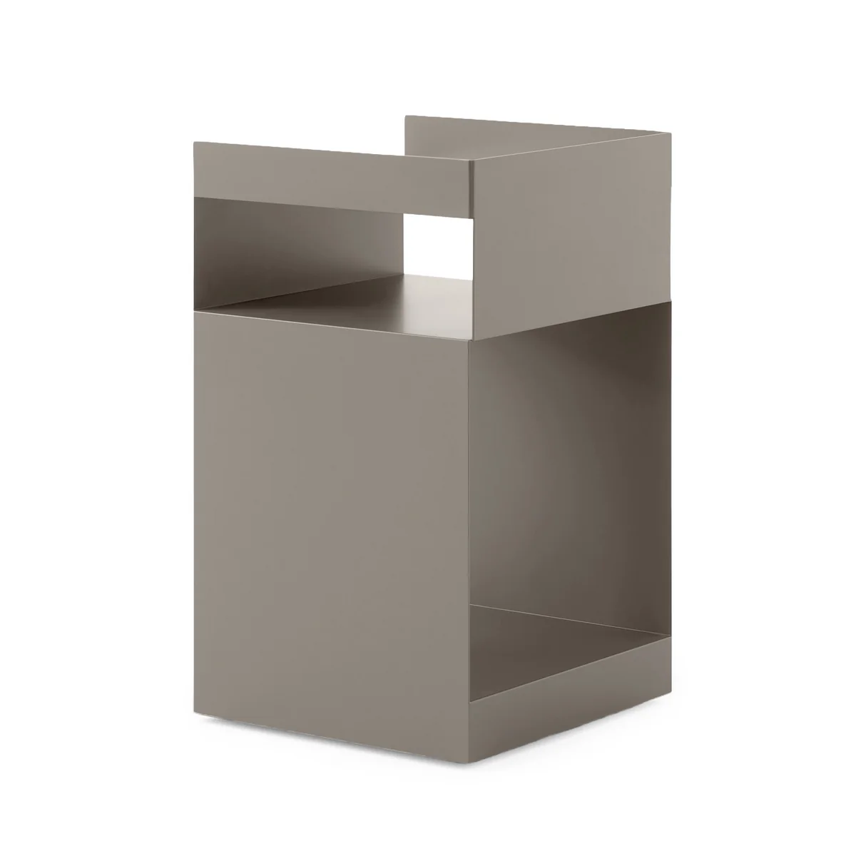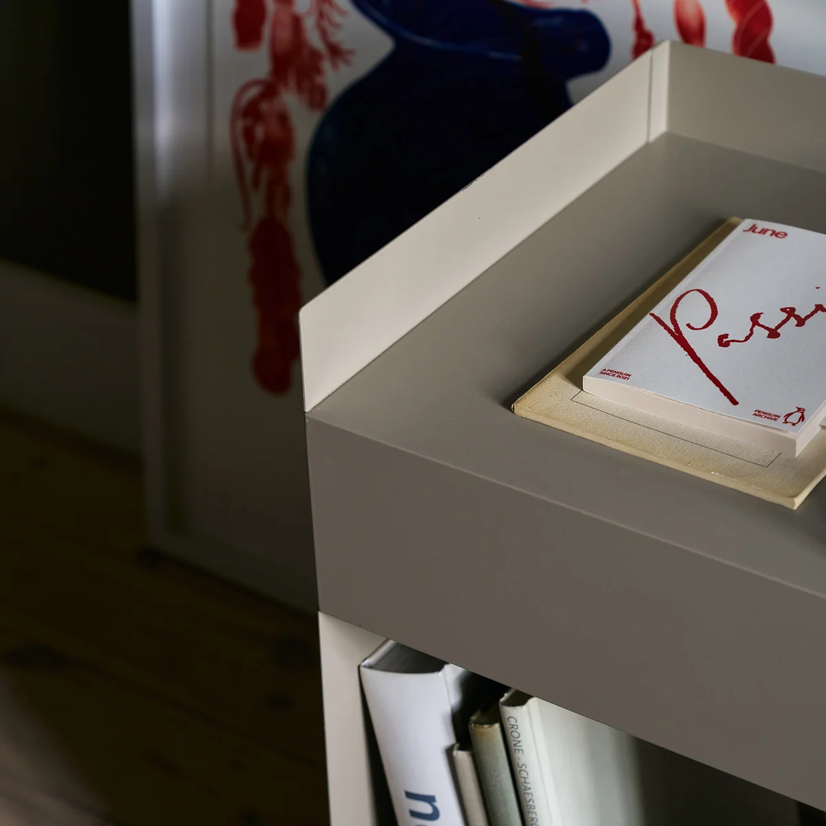 The Rotate SC73 side table from the Danish manufacturer & Tradition appears to be quite simple at first glance, but this belies its functional design. The asymmetrical side table can be used for a variety of purposes - from an office trolley to a shelf in the bathroom or a classic bedside table in the bedroom; Rotate can be integrated into any living space. It is made from a single piece of sheet metal, which is cut into two parts, bent and then welded together. The side table's wheels make it easy to maneuver.