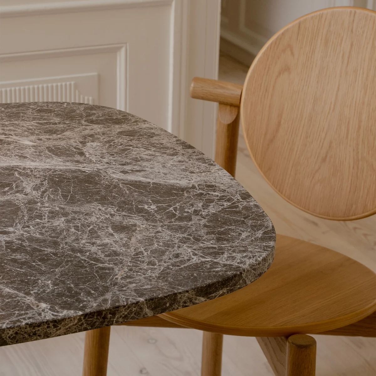 The Gather side table from Umage combines clean, Scandinavian lines with a soft, inviting design. The rounded table top and harmonious design language give it a modern yet homely character that creates a pleasant atmosphere in any room.