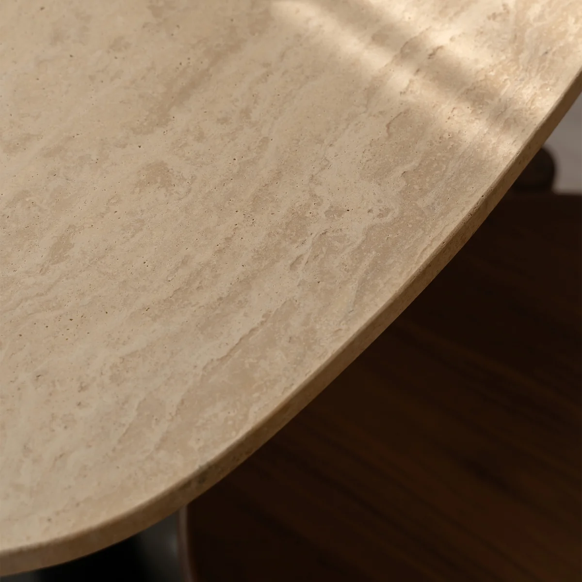 Made with a steel frame and marble or travertine table top, Gather impresses with its stability and timeless aesthetics. Whether in the living area, in the kitchen or in a café - this table adapts effortlessly to different environments and offers a stylish place for coffee, books or decoration.