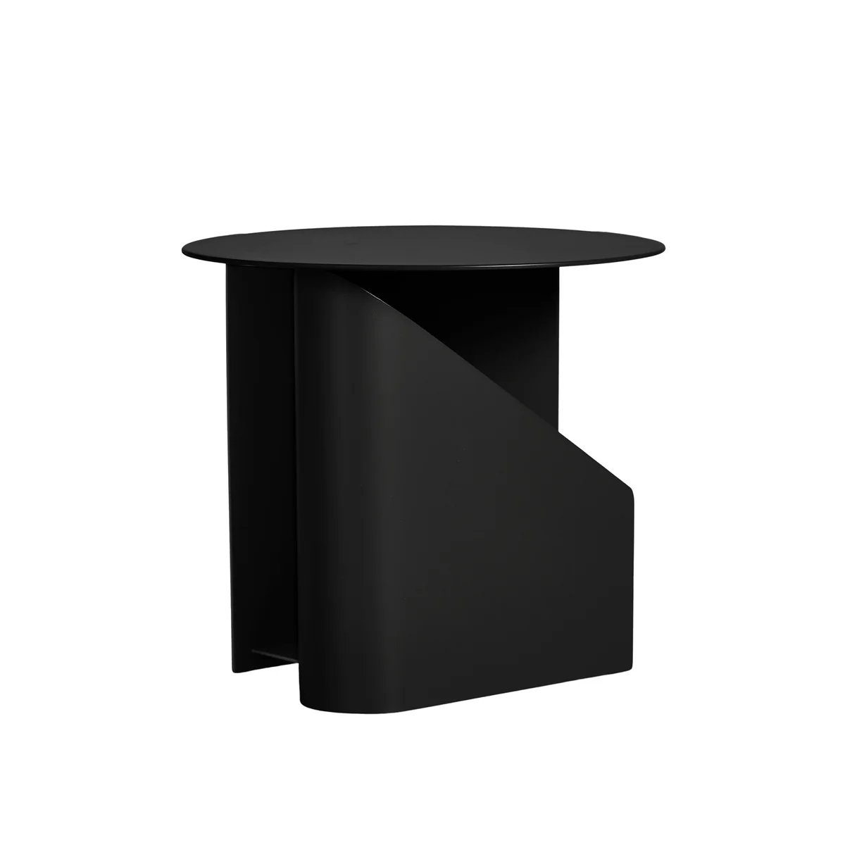 The reduced side table is made of powder-coated metal and is available in different colours.