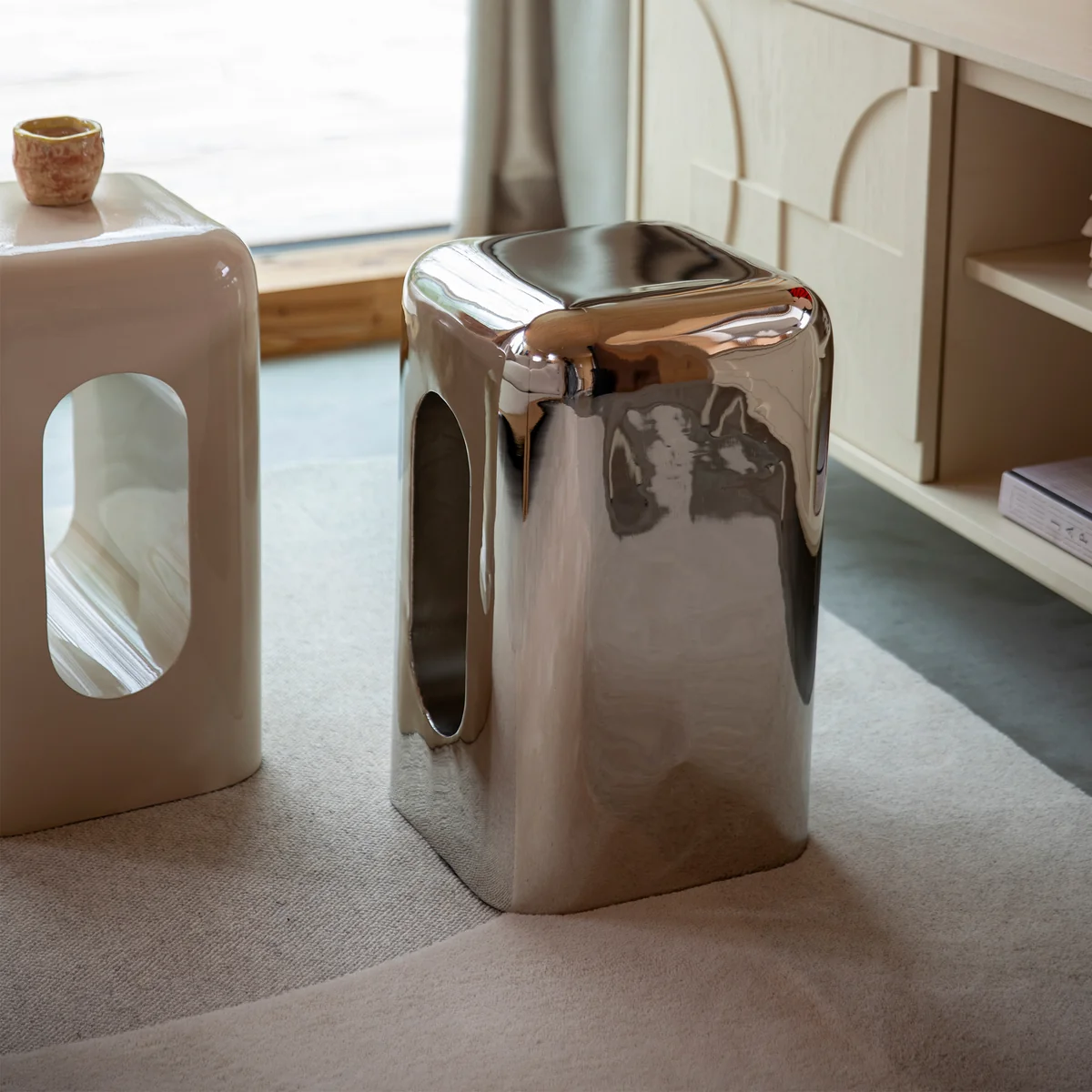 The Creek side table from Zuiver is a compact design object that immediately catches the eye with its shiny surface and unusual shape. With its sculptural character, it quickly becomes a stylish focal point in the living room.