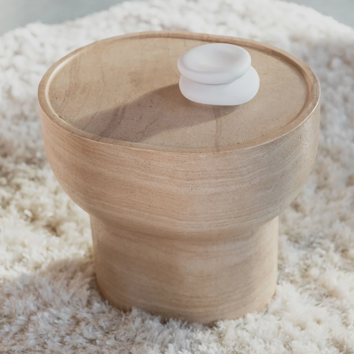 The Noble side table from Zuiver combines sculptural aesthetics with modern materials. Made from concrete and finished with a fine travertine-look coating, this table brings Mediterranean elegance into your home - robust, strong and yet understatedly stylish.