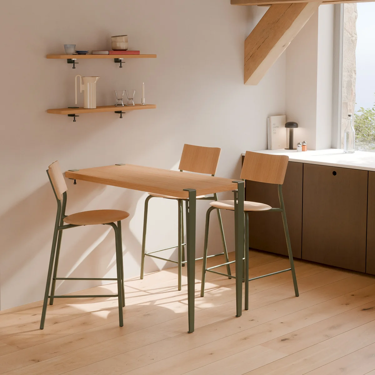 The bar table leg is made of powder-coated or patinated steel, depending on your choice, and is available in several colors