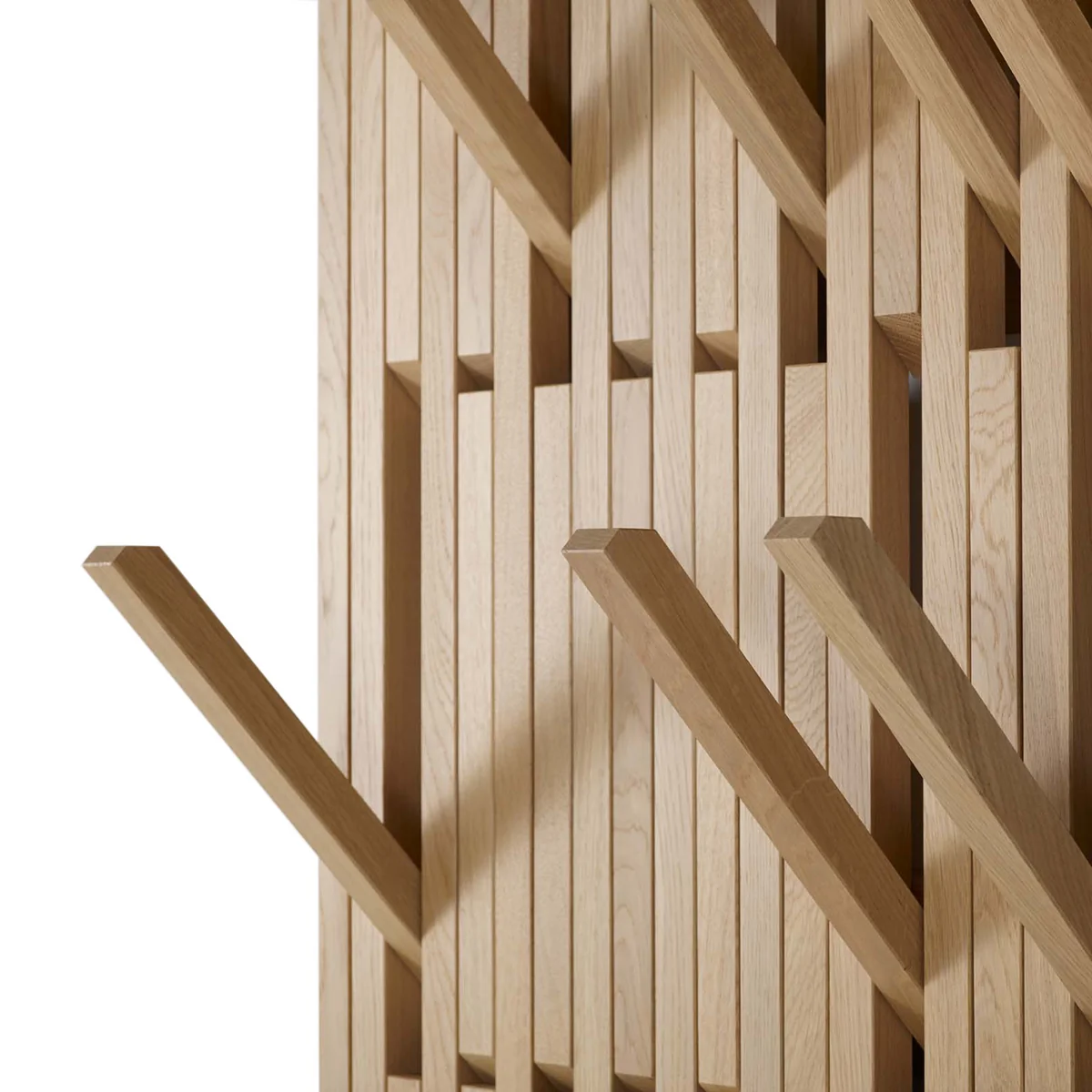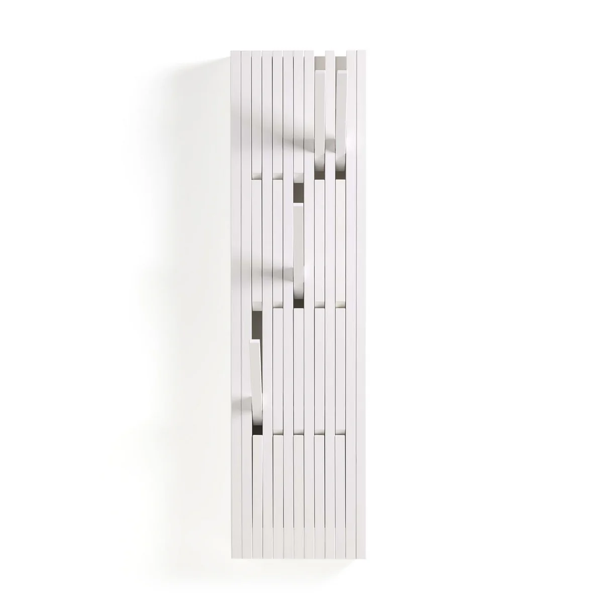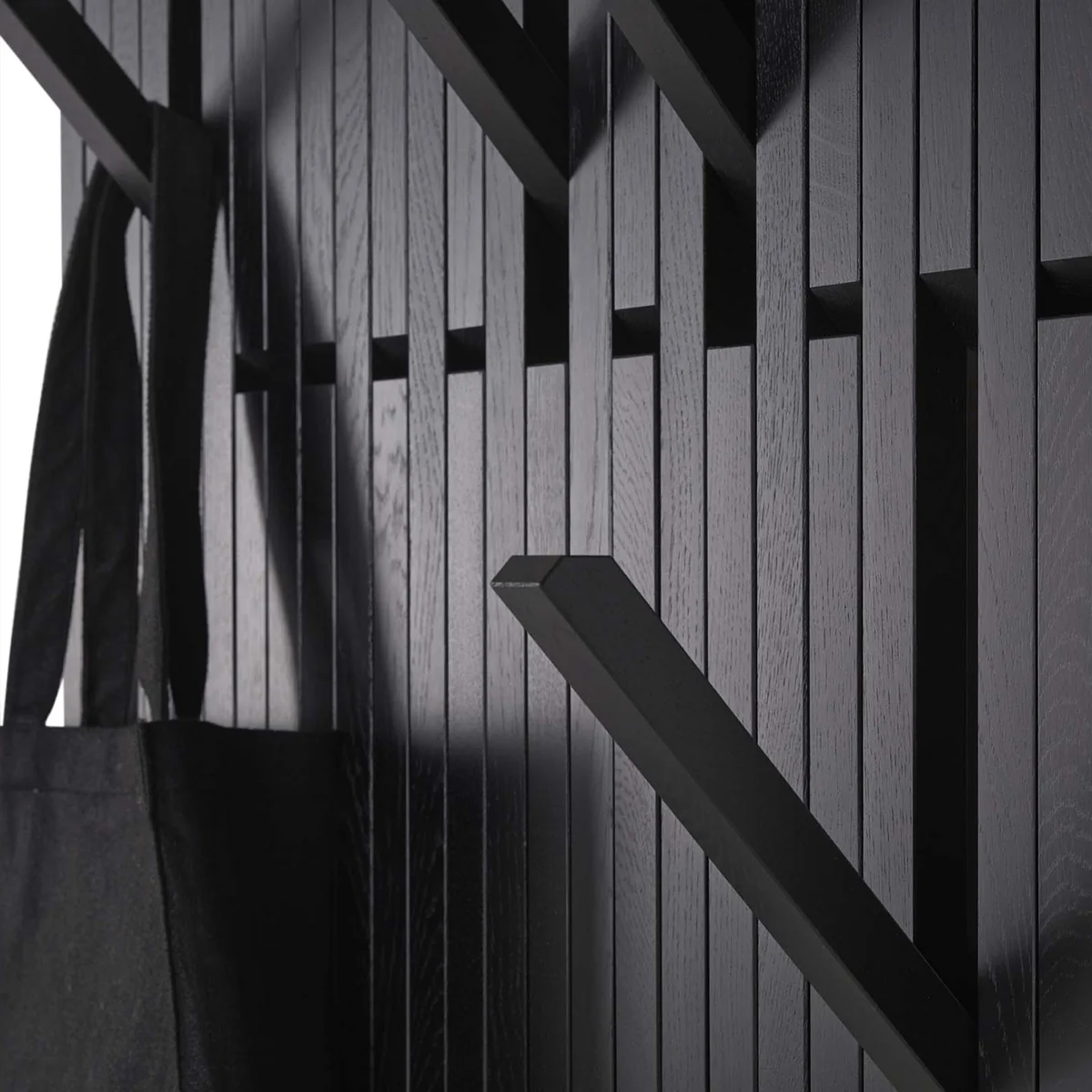 Thanks to the arrangement of numerous hooks on different levels, Piano Hanger is ideal for several people and for families with children. The lower hooks of the Peruse Piano Hanger can also be reached by smaller children. If the hooks are not needed, they disappear into the body of the wardrobe, which also acts as a rustic and graphic wall decoration.