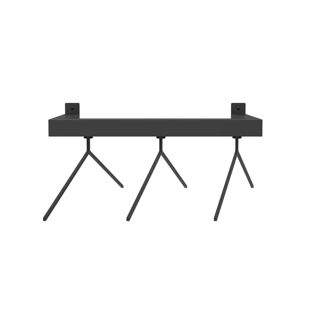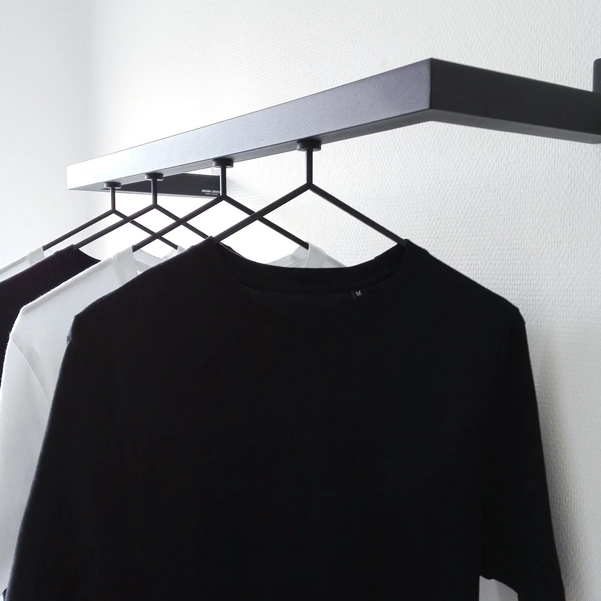 The special feature of HangSys is the magnetic steel. Matching coat hangers and hooks such as MagHang (set of 3) or MagHook by Nichba Design, are designed to be used on these surfaces. Both suspensions have a magnet and are simply stuck on to the coat rack. The HangSys coat rack is easily mounted with two screws.