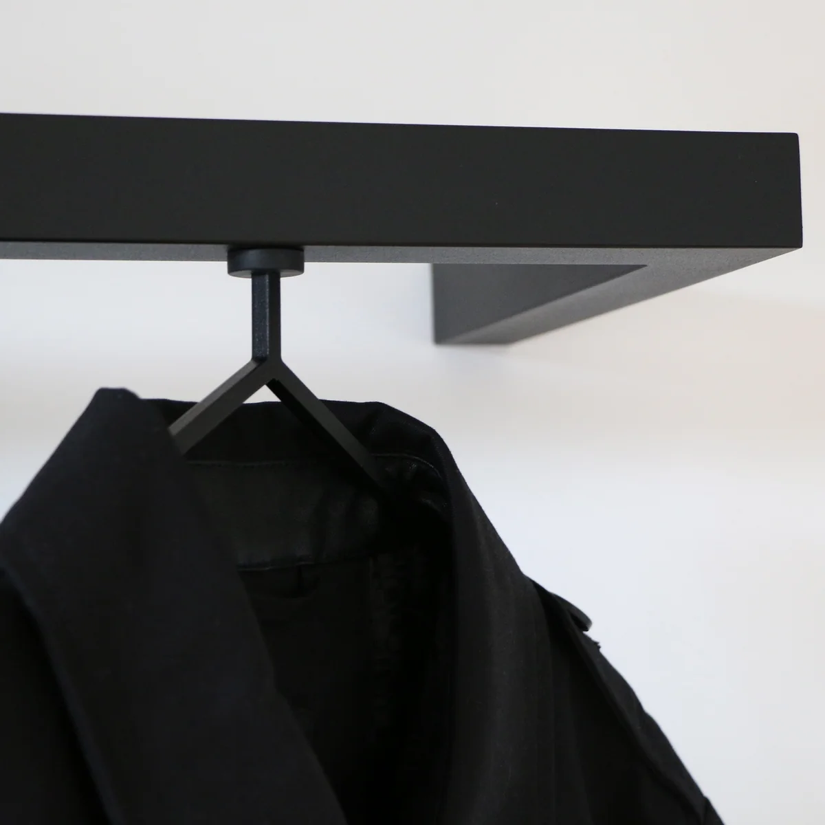 HangSys from Nichba Design is a modern and minimalist coat rack, with a timeless appearance. The coat rack consists of a construction made of powder-coated steel, on which magnetic coat hangers can be placed.