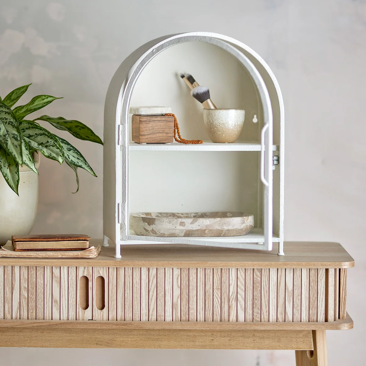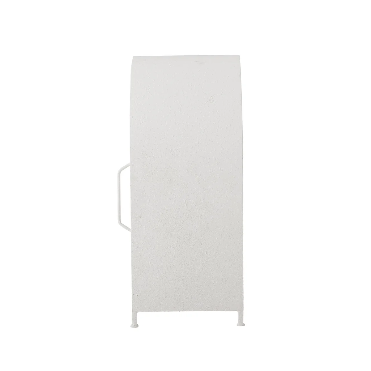 The Soria cabinet from Bloomingville impresses with its modern, minimalist design. Made of white lacquered metal, it impresses with its gently rounded shapes and raised legs, which add lightness and elegance to the room. The clean lines and neutral color scheme make the cabinet versatile - whether in the kitchen for crockery, in the hallway for everyday items or in the home office for stylish storage. The robust metal structure and easy-care surface guarantee durability and functionality.