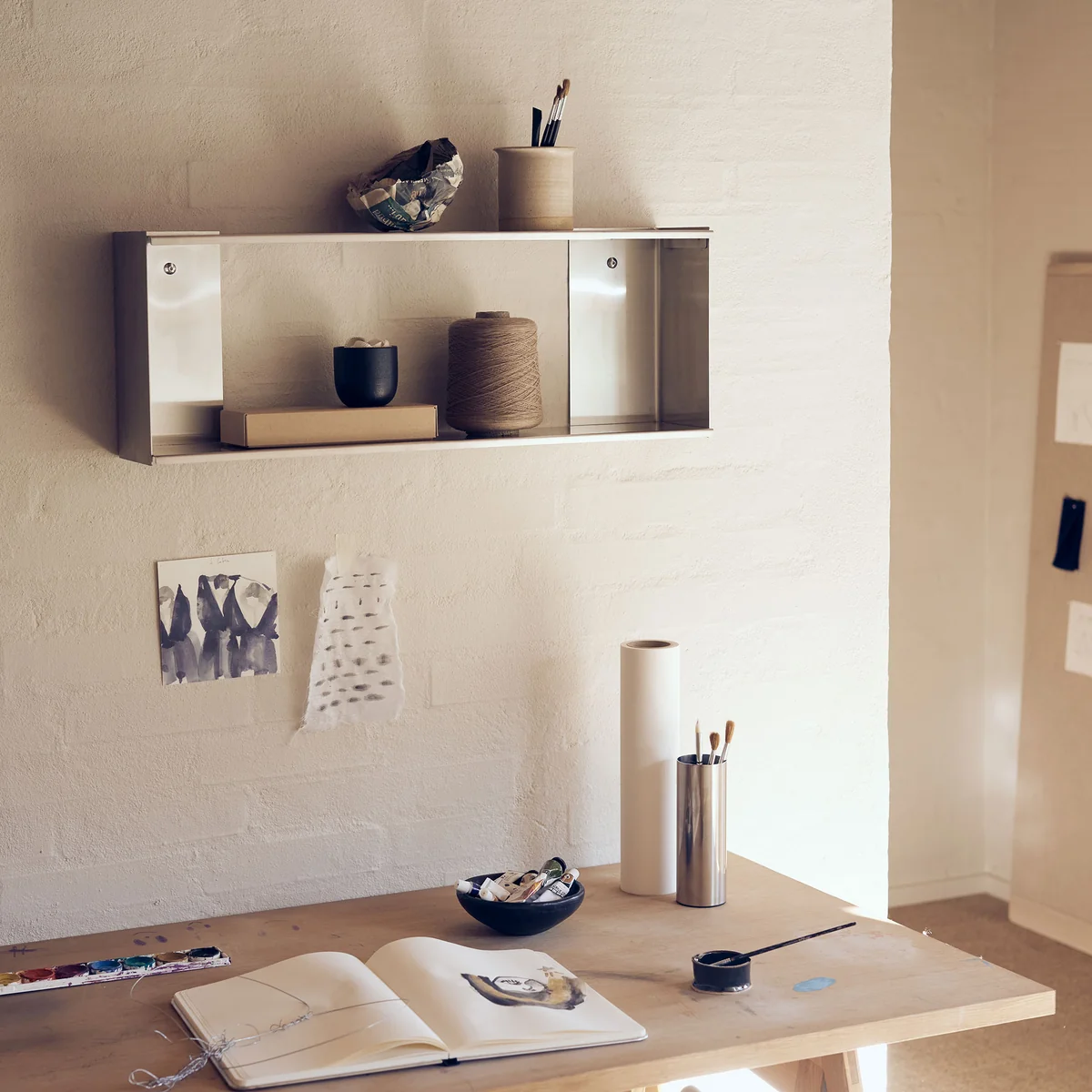 The Taper wall shelf from Form & Refine is an elegant, flat yet spacious shelf designed for practical storage in various areas such as the kitchen, bathroom, office, hallway or living room. The angled brackets at the back guarantee excellent stability while providing an open and airy appearance.