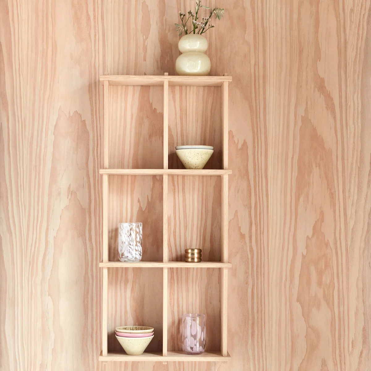 The Grid wall shelf from OYOY is made from high-quality oak and gives home furnishings a place to store and display your favorite memories, decorative objects or books. Glasses and cups or crockery for special occasions can also find their place on this stylish shelf. The wall shelf is the ideal eye-catcher in any living room, bedroom or kitchen. Versatile in use, the shelf can also be displayed both horizontally and vertically.