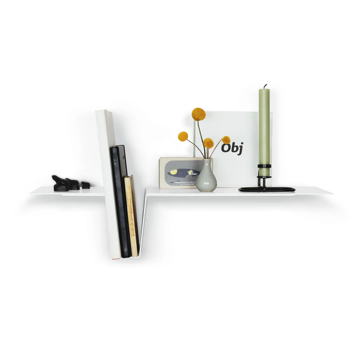 The wall shelf is made of powder-coated steel.