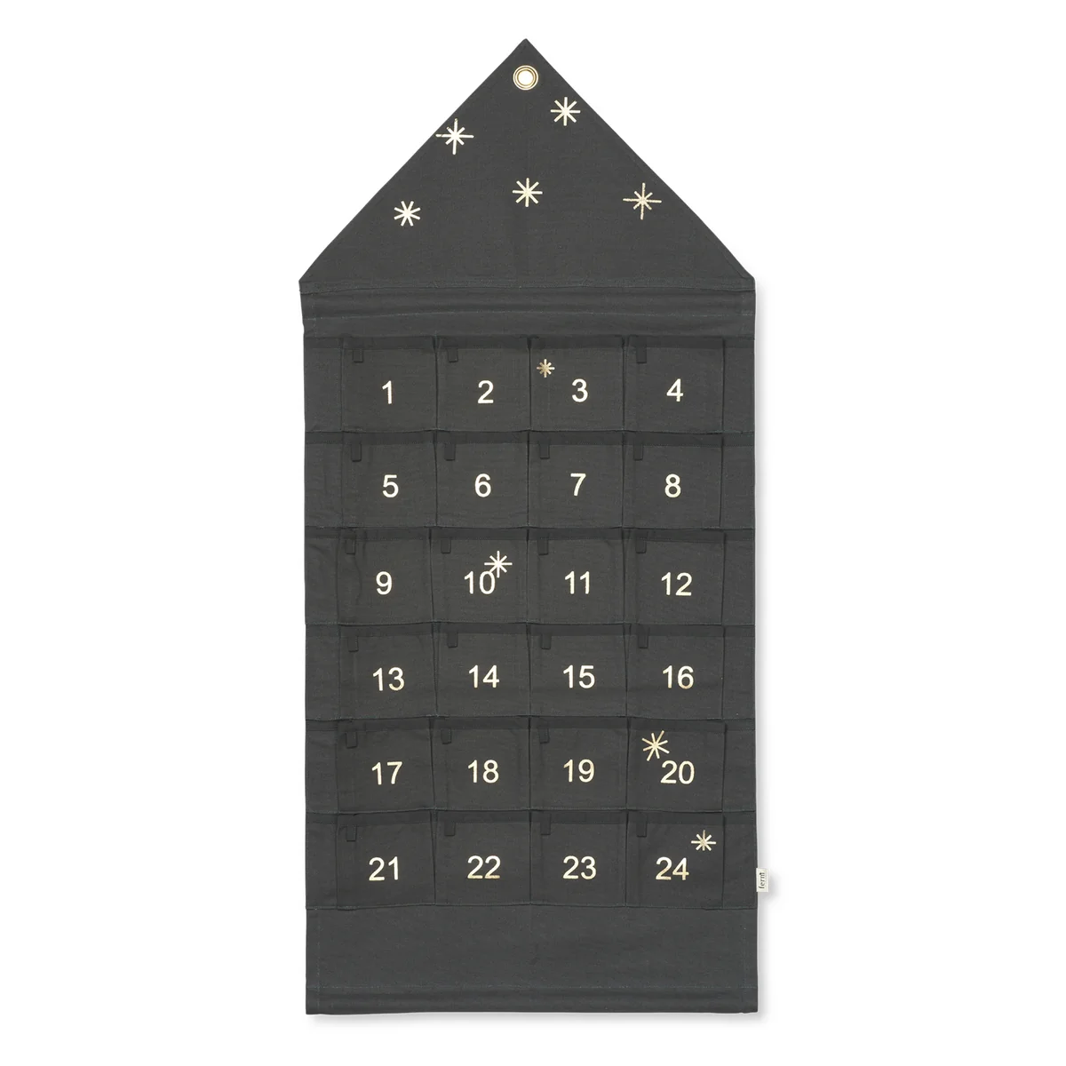 Each compartment can be set up entirely according to your own wishes. Since Ferm Living produces the Advent calendar from textile, it can easily be folded up after the holidays and stowed away to save space until it is used again next year for children and adults alike.
