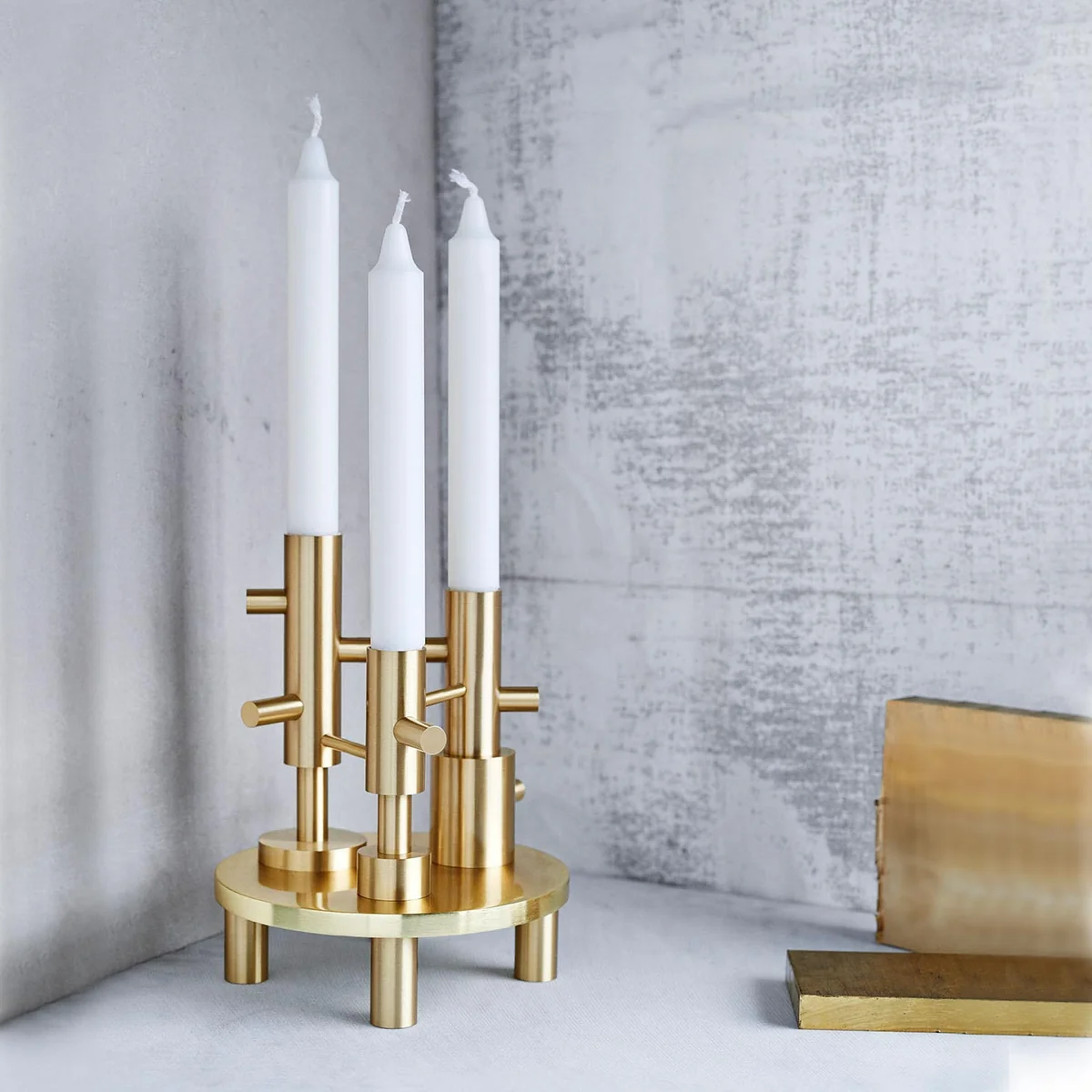 The 3-piece candle holder by Fritz Hansen was designed by Jaime Hayon for the Objects collection and is a reinterpretation of the classic chamber candle holder, which can be dated back to the 1 7. century. The multiple candle holder convinces with a particularly elegant look and high-quality material made of solid brass.