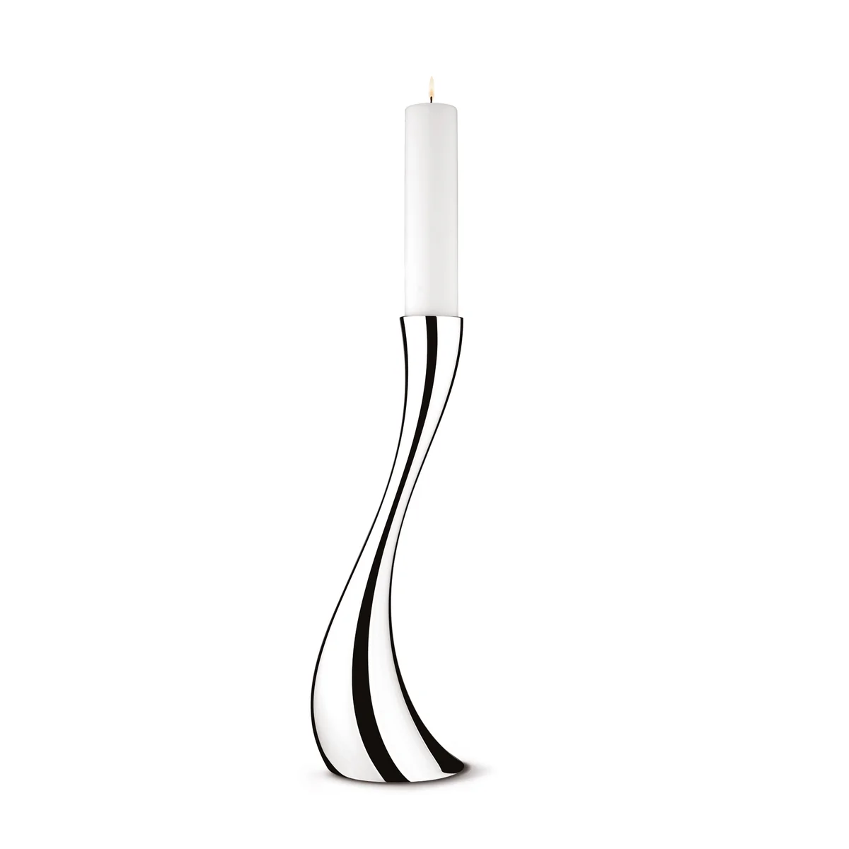The German designer Constantin Wortmann enjoys playing with the viewer’s perception. His candleholder for Georg Jensen is a typical example of his vision for transformation: ‘I simply imagined the familiar silhouette of a standard candleholder with organic curves.’ The result is a candleholder which has the appearance of being slightly molten, while simultaneously radiating supple vitality that is also functionally perfect. It owes its name, Cobra, to its snake-like design and power.