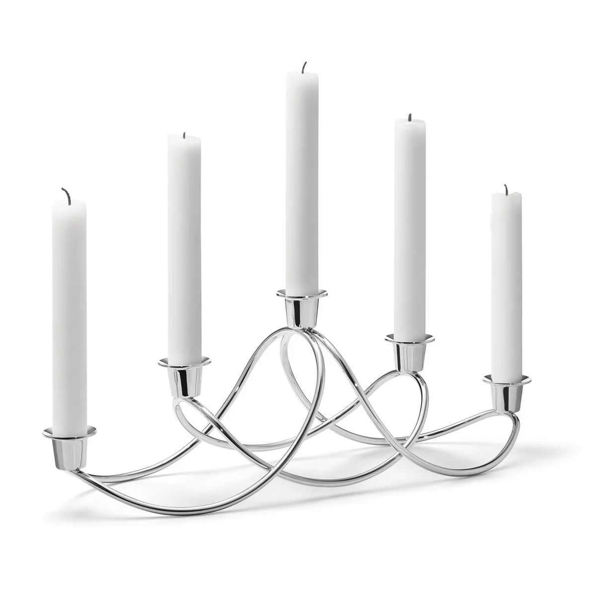 The candleholder Harmony was designed by Maria Bernsten for Georg Jensen in 2008. The harmonic candleholder offers space for five candles. The attractive shape can be enriched with ornaments if desired.