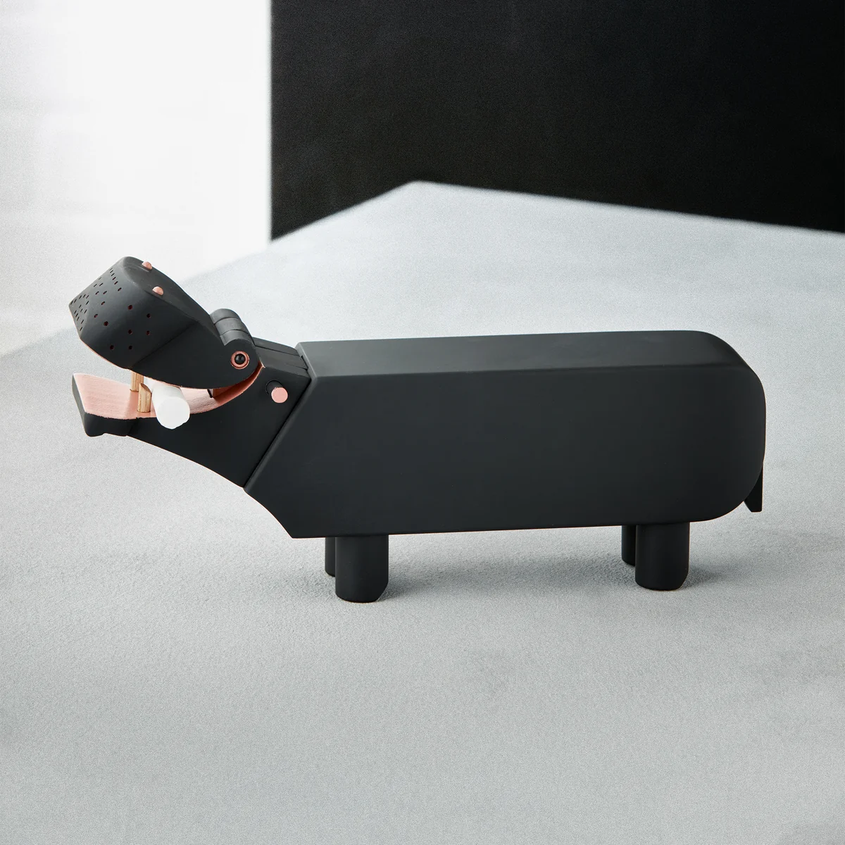 The wooden hippopotamus is part of a collection of wooden animals created by the designer Kay Bojesen between 1935 and 1957. It is the most angular animal design by Kay Bojesen and, with its movable maw, also the only one with a real utility function.