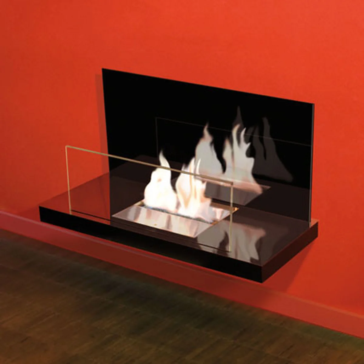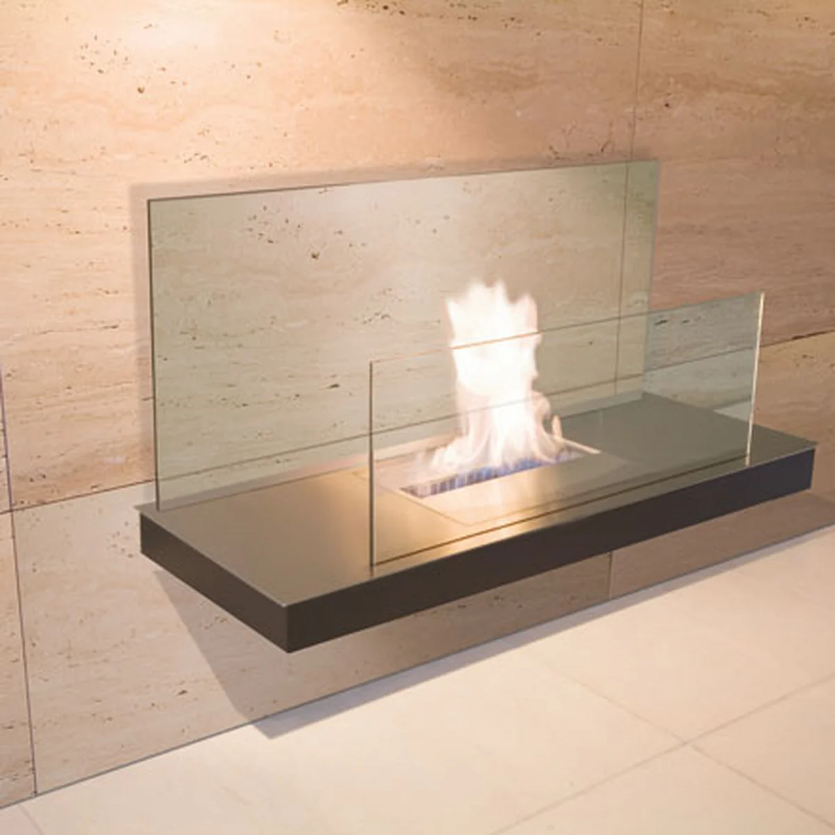 Fuel: liquid bio-ethanol 96%, denatured with 1% mek. Essentially burns to become steam and carbon dioxide. It is not necessary to use thickening products like gel and pastes. Therefore a clean fire without traces is possible.